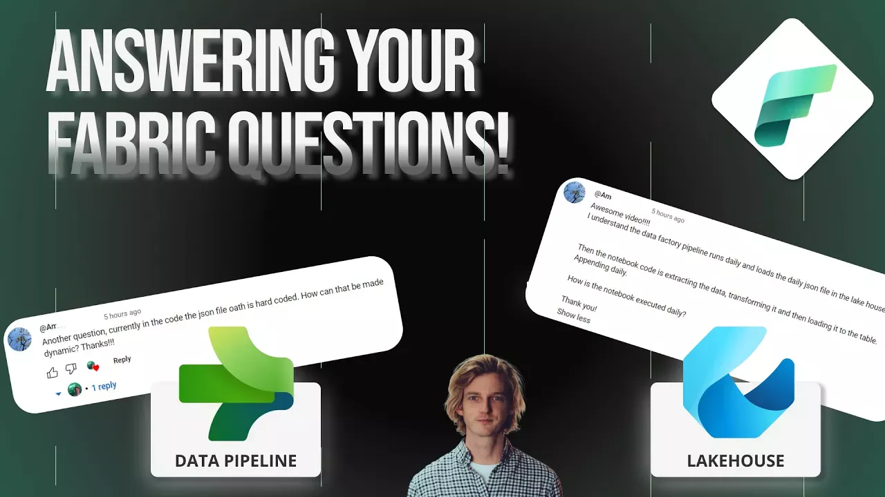10+ hours of FREE Fabric Training: https://www.skool.com/microsoft-fabric/classroom/d154aad4?md=3b108b0e216c46c88d891407ccd8647b #microsoftfabric #dataengineering In this video I answer two questions from a viewer of my last video. The focus is on: 1) how to create a dynamic file path to read JSON data in your Lakehouse Files area. 2) how to schedule the run of your notebook. We'll be exploring more about the Lakehouse, Synapse Data Engineering notebooks in Microsoft Fabric, scheduled of notebooks and data pipelines, This video follows on from my last video in this series, where we wrote a Fabric data engineering notebook for clean and transform JSON data from Lakehouse Files and load it into a Lakehouse table. You can watch that one here: https://youtu.be/4S-IocL9Glo --OTHER VIDEOS YOU MIGHT LIKE-- LAKEHOUSE - https://youtu.be/wb4HzFoqsU8 Data warehouse - https://youtu.be/UFF_QpHJJNQ Data pipelines - https://youtu.be/suL76brljZI End-to-end data flows project - https://youtu.be/ZmgZPhl2LRU OneLake - https://youtu.be/hQs_JxCmL0U --TIMELINE-- 0:00 Intro 0:31 Question 1 - dynamic file paths 0:56 Question 2 - scheduling notebook runs 1:14 Answer 1 - dynamic file paths 4:15 Answer 2 - scheduling notebook runs 6:28 Summary --LINKEDIN-- Not following the LinkedIn page yet? Here's the link: https://www.linkedin.com/company/learnmicrosoftfabric/ --ABOUT WILL-- Hi, I'm Will! I'm hugely passionate about data and using it to create a better world. I currently work as a Consultant, focusing on Data Strategy, Data Engineering and Business Intelligence (within the Microsoft/Azure/Fabric environment). I have previously worked as a Data Scientist. I started Learn Microsoft Fabric to share my learnings on how Microsoft Fabric works and help you build your career and build meaningful things in Fabric. --SUBSCRIBE-- Not subscribed yet? You should! There are lots of new videos in the pipeline covering all aspects of Microsoft Fabric.