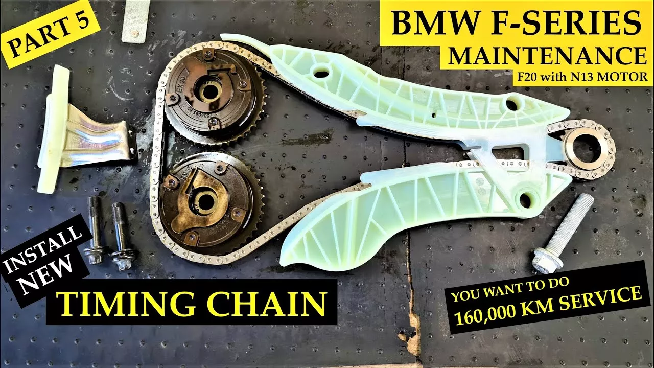 You may WANT to do 160,000 km of service for your BMW - [PART 5] Are you buying a BMW car with over 160000 km or 100000 miles? As in the previous episodes, I do a 160 tkm service for my BMW F20 car Diagnosis & maintenance BMW F20 116 2013 engine N13 (N13B16) 00:00 Intro 00:14 How about old timing chain and compare with new one - Remove chain from guide rails - Let’s take a closer look at the condition and compare - how much the old chain has stretched - The guide rail has cracked at one point - Guide rails connection point is really loose - Chain sprocket - Compare the old chain vs. new chain - The timing chain and guide rails back together 02:02 Install new timing chain - Install hub on crankshaft 04:23 Install camshaft adjusters - Position adjuster to camshafts - Screw in camshafts central bolts and release again by 90° - Screw special tool 119340 into the cylinder head - Pre-tension timing chain with special tool 009460 - Tighten camshaft central bolts 07:51 Install hub and MAIN bolt - Find a suitable position for special tool 119280 - tightening central bolt 09:10 Remove timing tools 09:53 Check timing 10:55 Test elongation of NEW timing chain - with a special tool 2353281 (117200) - Engine N13: Screw in special tool WITHOUT shim - New chain tensioner 12:32 Install vibration damper, drive belt, water pump drive wheel and friction gear 14:09 Install cylinder head cover - Spark plugs and clean all sealing surfaces for valve cover - Clean cylinder head cover and replace all gaskets - Camshaft sensors - Seal all edges and contact points on the cylinder head - Loctite SI 5970 sealing compound - Detach ground cable at screw connection. - Secure bolts for cylinder head cover in the sequence 1 to 12 19:59 Install DME holder - DME control unit 21:21 Replace clean air pipe for turbo charger - tank ventilation and engine ventilation lines 22:51 Start engine after timing chain replace 24:12 Filling cooling system - without vacuum filling unit 26:27 Oil service - new oil and oil filter - Do not exceed upper marking of oil dipstick - Excessively filled oil is causes damage to the engine. 28:45 All back in place - sound insulation of the upper part of the bulkhead - trailing link on spring strut dome 31:02 Test drive and check oil level via oil dipstick - Read fault codes Let’s continue with the next episode! Stay tuned! -- Watch this video! If you liked this video, press the LIKE BUTTON, SUBSCRIBE channel, leave COMMENTS and SHARE content! By doing so, you will be able to support this Youtube-channel! Thank you! I appreciate it! 👍 Watch my previous videos on Youtube related to the maintenance and diagnose of BMW F20 with engine N13! See the whole series from here: https://www.youtube.com/playlist?list=PLFua3BdQQbC9TdlmytF_H0BTFwvzCu6-k -- My purpose is to encourage people to do things themselves! Plus, this is a nice hobby for myself and at the same time I have the opportunity to save a lot of money by doing all the maintenance myself! I’m not a professional with cars or motorcycles, I just want to learn how to do things myself. If you do this service yourself, always check the correct instructions in the official service manuals. This is just my way of doing it! Jani Voutilainen You can follow me also in: INSTAGRAM: https://www.facebook.com/unsupportedbrowser FACEBOOK: https://www.facebook.com/unsupportedbrowser YOUTUBE: https://www.youtube.com/c/JaniVoutilainen Thanks for Music: Hybrid Cinematic Gaming Cyberpunk | URU by Alex-Productions | https://www.youtube.com/channel/UCx0_M61F81Nfb-BRXE-SeVA Music promoted by https://www.free-stock-music.com/ Creative Commons Attribution 3.0 Unported License https://creativecommons.org/licenses/by/3.0/deed.en