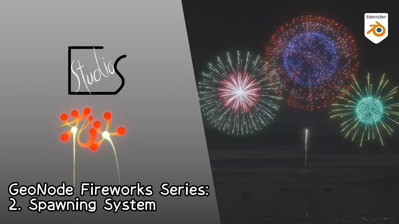 Why not make some flashes and bangs with Geometry Nodes. In this tutorial series, I'll be making a physics based fireworks with realistic movements. I'll be covering topics like making simple physics engine with simulation nodes, spawning system, spark shader, etc. everything you need to make fireworks. At the end you'll be star mining your scene as if it is New Years' Eve! ~~~~~~~~~~~~~~~~~~~~~~~~~~~~~~~~~~~~~~~~~~~~~ For this episode, I'll be making a burst and spawning system. You can make a system so parent spawns children, which spawns more children, which s..... Just make sure you have enough memory in your PC! Back Issue Ep. 1 Physics Engine https://youtu.be/1_M_nKQa_Zw Blender Ver. Used: 4.1