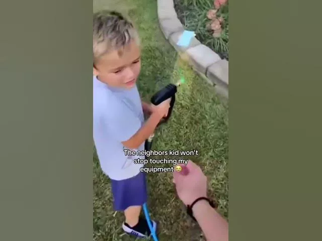 You've been warned... repeatedly. But when the neighbor's kid won't stop messing with your tools, sometimes you need to speak a language they understand. The garden hose: nature's ultimate "no trespassing" sign. 😂