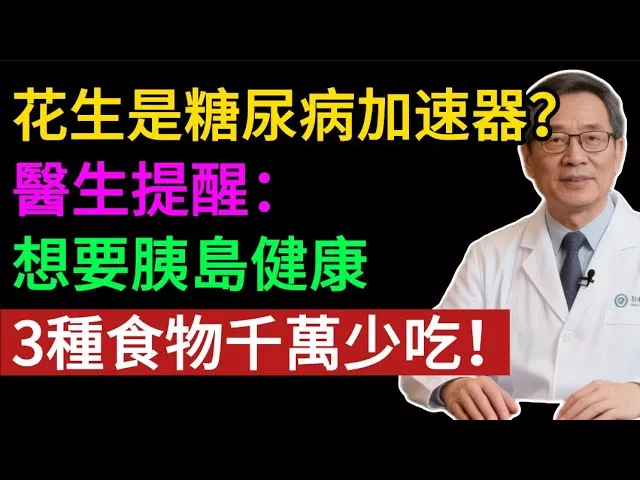 ▶ 本頻道是 [健康之眼] 在 YouTube 的唯一官方頻道。 ▶ 請認准官方頻道,謹防上當受騙!感謝支持! 網傳花生是糖尿病的「加速器」,吃了會讓血糖飆升?其實這是個天大的謠言!權威研究發現:吃對花生,不僅不升糖,反而能把糖尿病風險降低 24%!真正讓您血糖失控的,其實是餐桌上另外 3 種食物。 本期視頻,我們將為花生「平反」,並揪出 3 個真正的糖尿病加速器。為什麼白粥養胃卻傷胰島?哪種水果是痛風推手?如何正確吃花生才能降糖護血管? 視頻重點內容: 花生降糖的三大法寶:不飽和脂肪酸、膳食纖維、鎂元素。 正確吃花生的 3 個細節:帶皮吃、巧搭配(加醋/全麥)、嚴控總量。 揭秘 3 大「升糖殺手」: 糖油混合物(蛋黃酥、油條)。 糖化過度的精緻主食(軟爛白粥、麵條)。 高糖水果(荔枝、龍眼、榴蓮)。 全天候控糖方案:一日三餐加兩頓加餐,這樣吃血糖穩如泰山。 黃金時間點:為什麼下午 4 點必須加餐? 看完視頻,您就知道保護胰島健康哪些能吃、哪些不能吃。如果您覺得內容實用,請按讚、分享給身邊的糖友,大家一起吃得健康,遠離併發症! 免責聲明: 本視頻內容僅供科普參考,不能替代專業醫療建議。糖尿病患者請在醫生指導下調整飲食和用藥,切勿擅自停藥。 #糖尿病飲食 #降血糖 #花生 #白粥 #升糖指數 #胰島素抵抗 #健康飲食 #養生 #食療 #高血糖 #控糖食譜 #膳食纖維 🔍 重要說明: 本頻道的影片內容參考了網絡資源、社交平台公開資訊以及部分專業醫師的研究資料或文章。資訊僅供參考,請勿作為專業診斷依據。 影片中涉及的健康與醫學相關知識,僅為健康普及目的,並非醫療處方或診治建議。如有健康疑慮,建議您務必前往正規醫療機構就診。 📌 誠摯提醒: 所有內容皆為本頻道原創製作,符合平台規範,嚴禁未經授權轉載,侵權必究! 嚴禁將本頻道內容轉載至中國大陸任何平台,如有發現,請協助檢舉。