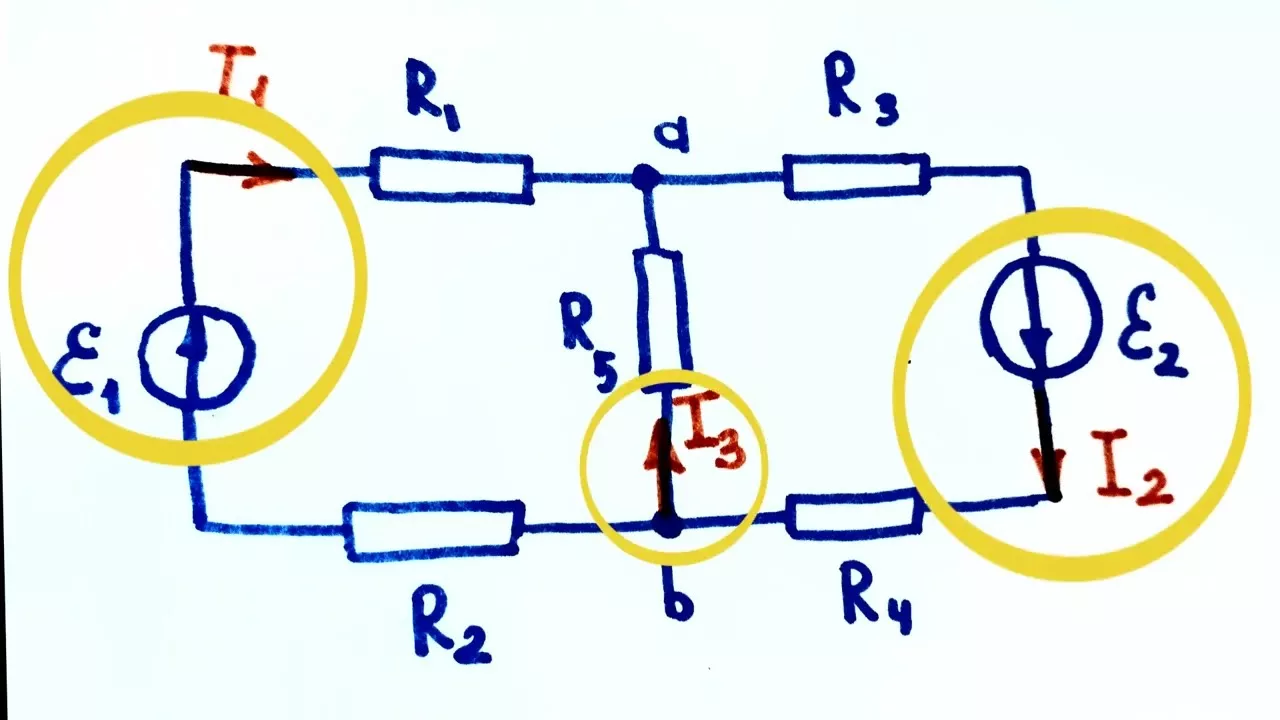 Подробное решение задачи на определение токов в ветвях электрической цепи постоянного тока с применением законов (правил) Кирзгофа