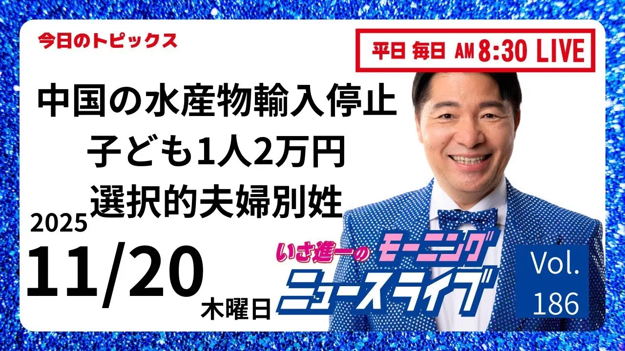 【モーニングニュースライブ】知ってほしい今日のニュースを厳選!いさ進一が生解説する新聞情報 ・ ニュースチェック【 10分解説 / 政治ニュース / 生配信 】 その日や直近のニュース情報だけでなく、独自目線で炎上している話題や世間で噂された話の嘘やデマを厳しくチェックし実際のところを正直に話します! 平日の朝毎日生配信! =============== ↓↓↓チャンネル登録お願いします↓↓↓ https://www.youtube.com/user/isa1341ch?sub_confirmation=1 いさ進一公式Webサイト http://www.isa41.net/ いさ進一SNS 【X】 https://x.com/isashinichi 【Facebook】 https://www.facebook.com/unsupportedbrowser 【TikTok】 https://www.tiktok.com/@isa.izazenshin
