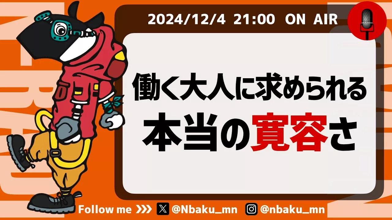 ★1対1での悩み相談はNバクコンサルへ★ https://nbaku-online.stores.jp/ ★無料の相談は公式LINEへ★ https://line.me/R/ti/p/@277wzaml?from=page&searchId=277wzaml ★講演・研修・執筆などお仕事依頼はこちら★ https://docs.google.com/forms/d/e/1FAIpQLSeqXRX6t3K_A3c8RoK-iw-dOE6Y4rPGPzoOKstf47e3bwp_BA/viewform ★Twitter★ https://twitter.com/Nbaku_mn ★Instagram★ https://www.facebook.com/unsupportedbrowser ★note★ https://note.com/n_baku