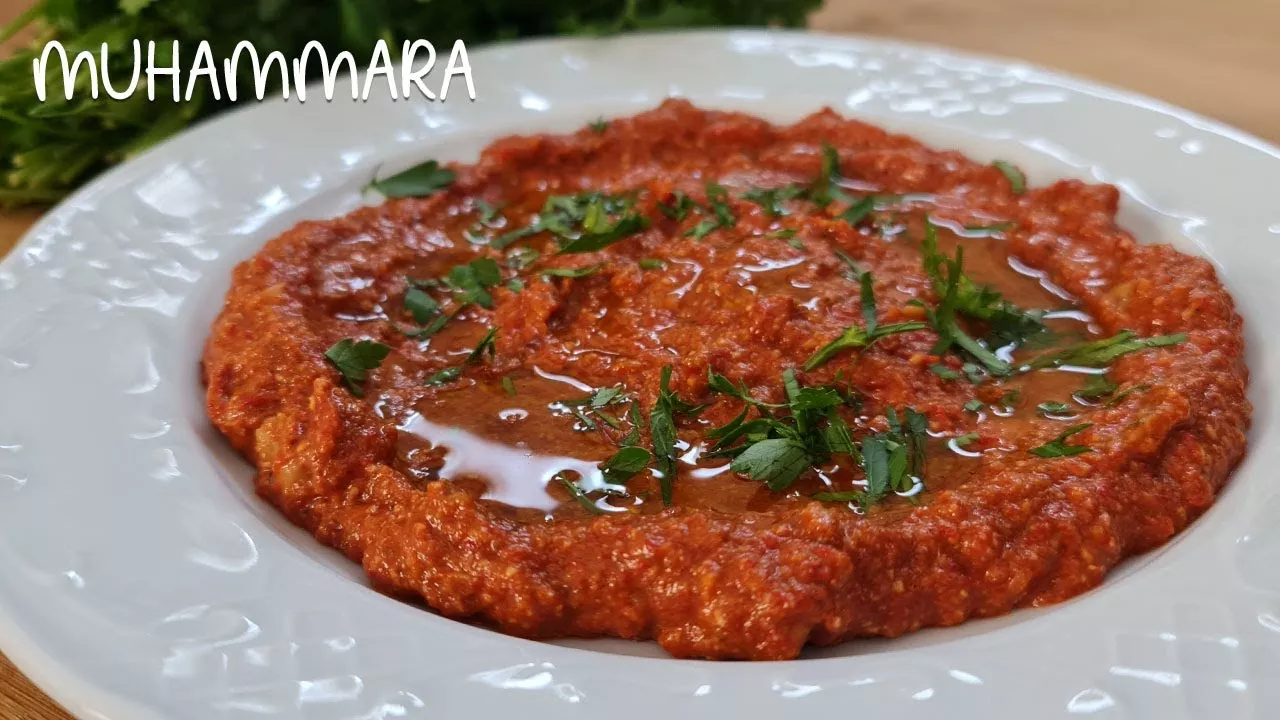 Мухаммара Сладкий перец шошка + острый перец 750 гр Грецкие орехи -100 гр Панировочные сухари - 50 гр Чеснок - 2 з Гранатовый сироп - 4 ст.л Лимонный сок - 2 ст.л Томатная паста - 1 ст.л Зира молотая - 1ч.л Паприка сладкая - 2 ч.л Оливковое масло - 5 ст.л Соль Петрушка для подачи