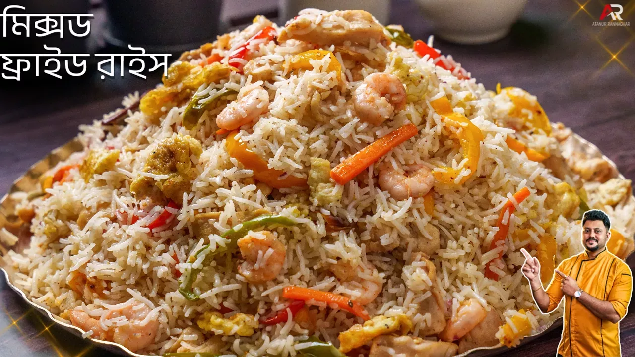 মিক্সড ফ্রাইড রাইস একদম অনুষ্ঠান বাড়ি স্টাইলে | Mixed Fried Rice Recipe Bangla | Atanur Rannaghar আমার থেকে সরাসরি রান্না শিখতে চাইলে কিনে নিতে পারেন আপনার Basic cooking course (Helpline 8910649298) এই লিংকএ ক্লিক করে |https://bit.ly/3R8KOSh Atanur Rannaghar Website: https://atanurrannaghar.com Atanur Rannaghar Recipes Website:https://atanurrannagharrecipe.com/ Atanur Rannaghor Shorts Channel: https://www.youtube.com/@atanurrannagharshorts Contact us: https://atanurrannaghar.com/contact-us/ Facebook:https://www.facebook.com/unsupportedbrowser Mixed Fried Rice Recipe is very easy to make. Still, there are some tips that you have to follow so here in this recipe I will show you how to make a Mixed Fried Rice Recipe which you can serve for any festival. If you like the video please subscribe to Atanur Rannaghar for more bengali recipes like this. Thanks Click the link and get these kitchen utensils From Amazon which I use for Most of My videos. _____________________________________________________________ 1. Royal Velvet Non-Stick Fry Pan with Induction Bottom and Soft-Touch Handle: https://www.amazon.in/Wonderchef-Royal-Velvet-Aluminium-Purple/dp/B07L8WRFS5?language=en_IN 2. Prestige Omega Deluxe Aluminium Granite Fry Pan, 20cm (Omelette Pan), Black: https://www.amazon.in/Prestige-Aluminium-Non-Stick-Granite-Omelette/dp/B0BB6ML9GX?language=en_IN 3. Solimo Aluminium Non-Stick Frying Pan: https://www.amazon.in/Solimo-Aluminium-Cookware-3-Pieces-SONSC43/dp/B07P6R6R4M?language=en_IN 4. Prestige Apple Plus Red Aluminium Inner Lid Pressure Cooker,2Litres:https://www.amazon.in/Prestige-Powder-Coated-Aluminium-Pressure/dp/B00EIBZ5VG?language=en_IN 5. Hawkins Contura 3 Litre Aluminium Inner Lid Pressure Cooker Mustard Yellow: https://www.amazon.in/Hawkins-Contura-Ceramic-Pressure-Mustard/dp/B013FZ0YCK?language=en_IN 7. Weight Chopper / Cleaver Knife for Kitchen Home Restaurant: https://www.amazon.in/Shruthi-Chopper-Cleaver-Kitchen-Restaurant/dp/B098LL59LH?language=en_IN 8. Combo (3 Knife): https://www.amazon.in/s?k=Combo+%283+Knife%29&language=en_IN 9. Stainless Steel Professional Butcher Chopper: https://www.amazon.in/KPNG-Stainless-Professional-Ergonomic-Restaurant/dp/B08TZVVC11?language=en_IN 10. Borosil Glass Serving and Mixing Bowls with Lids, Oven & Microwave Safe 8. Bowls, Set of 3: https://www.amazon.in/Borosil-Basics-Glass-Mixing-Bowl/dp/B07YNSHQSB?language=en_IN 11.Solimo Non-Stick Kadhai with Glass Lid: https://www.amazon.in/dp/B07P913VF3?th=1&language=en_IN 12.4 PCs 304 Stainless Steel Golden Spoons: https://www.amazon.in/NAIDEV-Stainless-Golden-Spoons-Colorful/dp/B09B72QQSC?language=en_IN 13:Safe x Nitrile Powder-free Examination Gloves (Medium, Large, Black) - 50 Pieceshttps://www.amazon.in/AM-Safe-Nitrile-Powder-free-Examination/dp/B08CBYPPBN?language=en_IN 15. Non-Stick Aluminium Gas Compatible Grill Pan, 24 cm: https://www.amazon.in/Attro-Non-Stick-Compatible-Grill-Pan/dp/B08DGP11M2?sp_csd=d2lkZ2V0TmFtZT1zcF9hdGY&language=en_IN 16. Hawkins 30 cm Grill Pan, Non Stick: https://www.amazon.in/Hawkins-Grilling-Square-Ceramic-DCGP30/dp/B09X5G69LN?th=1&language=en_IN 17. Multi-Purpose Grater And Slicer Silver:https://www.amazon.in/kishus-kitchen-Stainless-Classic-Grater/dp/B07ZX9C5KF?language=en_IN 18:knife sharpener: https://www.amazon.in/Professional-Sharpener-Combination-Sharpening-CSSC109/dp/B087JLLN6S?language=en_IN 19.1ltr Glass Oil Dispenser With Lid: https://www.amazon.in/Oblivion-1ltr-Glass-Oil-Dispenser/dp/B0BN1G4RJ8?sbo=RZvfv%2F%2FHxDF%2BO5021pAnSA%3D%3D&language=en_IN 20. Commercial Iron Chinese Kadai: https://www.amazon.in/Gopala-Exports-Commercial-Chinese-Noodles/dp/B0BW5GPTJT?language=en_IN 21. Silicone Non-Stick Heat Resistant Spatulas: https://www.amazon.in/Clazkit-YH547-Silicone-Spatula-Red/dp/B07NDR5MNB?language=en_IN 23: Storage Jar, Set of 6, 310 ml Each, Transparent:https://www.amazon.in/dp/B07THB8P6Y?th=1&language=en_IN 24. Wood Chop Anti-Bacterial: https://www.amazon.in/Wood-Chop-Chopping-Professional-Standard/dp/B08X6P3C7K?sp_csd=d2lkZ2V0TmFtZT1zcF9hdGY&th=1&language=en_IN 25. Cookwell Bullet Mixer Grinder (5 Jars, 3 Blades, Silver): https://www.amazon.in/Cookwell-Bullet-Mixer-Grinder-Silver/dp/B097XJQZ8H?th=1&language=en_IN 26. Knife set combo: https://www.amazon.in/Harivar-Stainless-Rotating-Professional-Precision/dp/B07SNCPPLW?language=en_IN 27. Hand Blender: https://www.amazon.in/Inalsa-Robot-Inox-750S-Detachable/dp/B09N6X93WS?language=en_IN My Gear For Videos: Sony Alpha 7SM3 Full-Frame Mirrorless Camera: https://www.amazon.in/Sony-ILCE-7S-Full-Frame-Mirrorless-Camera/dp/B08L5J7699?th=1&language=en_IN Rode Wireless Go II: https://www.amazon.in/Rode-Wireless-Go-II-Single/dp/B09RBFVFZZ?sp_csd=d2lkZ2V0TmFtZT1zcF9hdGY&language=en_IN GODOX SL150II: https://www.amazon.in/GODOX-SL150II-150W-Video-Light/dp/B08C7ZS9R5?language=en_IN Fried Rice Ingredients এলাচ / cardamom লবঙ্গ / Long দারুচিনি / Cinnamon ৫০০ গ্রাম ভিজানো বাসমতি চাল / 500g soaked basmati rice স্বাদমত নুন / salt to taste ১ চা চামচ ভিনিগার / 1 tsp vinegar ১-১.৫ চা চামচ ঘি / 1-1.5 TSP Ghee ৬ টি এলাচ / 6 ea Cardamom ৬ টি লবঙ্গ / 6 Ea Long ১ চা চামচ শাহী মরিচ / 1 tsp Whole white pepper ১ টি দারুচিনি / 1 ea Cinnamon ১/২ চা চামচ শাহী জিরা / 1/2 tsp shahi jeera ১/২ টি জয়ত্রী / 1/2 ea Mace গোলাপের পাপড়ি / rose petals ৩০০ গ্রাম চিকেন / 300g chicken ৩ টি ডিম / 3 Ea Egg ২০০ গ্রাম চিংড়ি মাছ / 200g prawn ১-১.৫ চা চাম