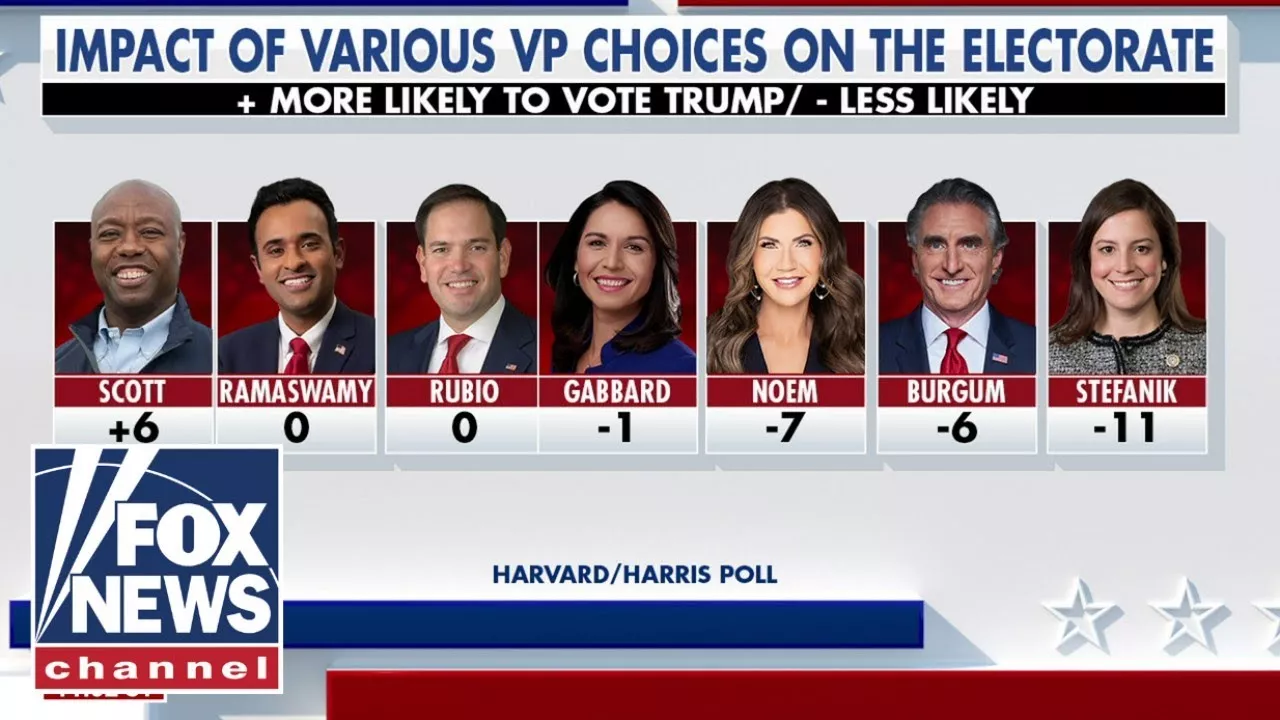 ‘Outnumbered’ panel discuss the possible VP picks for Trump and how Sen. Tim Scott ranks the highest in a new poll. Subscribe to Fox News! https://www.youtube.com/user/foxnewschannel?sub_confirmation=1 Watch more Fox News Video: https://www.foxnews.com/video Watch Fox News Channel Live: http://www.foxnewsgo.com/ FOX News Channel (FNC) is a 24-hour all-encompassing news service delivering breaking news as well as political and business news. The number one network in cable, FNC has been the most-watched television news channel for 18 consecutive years. According to a 2020 Brand Keys Consumer Loyalty Engagement Index report, FOX News is the top brand in the country for morning and evening news coverage. A 2019 Suffolk University poll named FOX News as the most trusted source for television news or commentary, while a 2019 Brand Keys Emotion Engagement Analysis survey found that FOX News was the most trusted cable news brand. A 2017 Gallup/Knight Foundation survey also found that among Americans who could name an objective news source, FOX News was the top-cited outlet. Owned by FOX Corporation, FNC is available in nearly 90 million homes and dominates the cable news landscape, routinely notching the top ten programs in the genre. Watch full episodes of your favorite shows The Five: https://www.foxnews.com/video/shows/the-five Special Report with Bret Baier: https://www.foxnews.com/video/shows/special-report Jesse Watters Primetime: https://www.foxnews.com/video/shows/jesse-watters-primetime Hannity: https://www.foxnews.com/video/shows/hannity The Ingraham Angle: https://www.foxnews.com/video/shows/ingraham-angle Gutfeld!: https://www.foxnews.com/video/shows/gutfeld Fox News @ Night: https://www.foxnews.com/video/shows/fox-news-night Follow Fox News on Facebook: https://www.facebook.com/unsupportedbrowser Follow Fox News on Twitter: https://twitter.com/FoxNews/ Follow Fox News on Instagram: https://www.facebook.com/unsupportedbrowser
