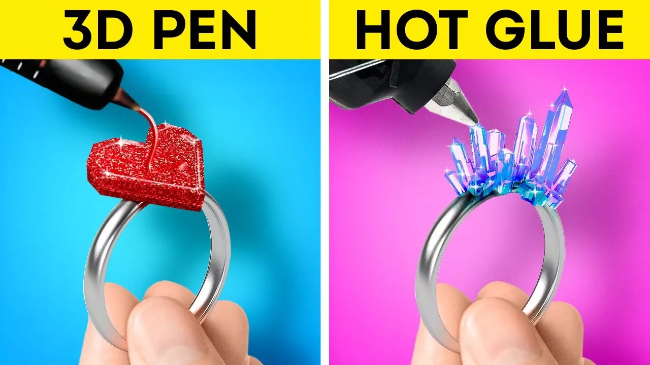 Hey, crafters! What tool do you prefer when we talk about crafting? A glue gun or a 3D pen? Let us know in the comments below! In this video, you will find lots of DIY jewelry pieces and see how to make a colorful jewelry stand with a 3D pen. If you are a parent, keep watching to find simple crafts and DIY toys your kids will love! In this video, we will also show you how to make an excellent feet massager, an adorable hairbrush, and renovate your keyboard with a 3D pen. TIMESTAMPS: 00:01 - Cute hot glue ring 00:17 - DIY massager for your feet 01:29 - How to organize your jewelry 03:17 - Lollipop made with a glue gun This video is made for entertainment purposes. We do not make any warranties about the completeness, safety and reliability. Any action you take upon the information on this video is strictly at your own risk, and we will not be liable for any damages or losses. It is the viewer's responsibility to use judgment, care and precautions if one plans to replicate. The following video might feature activity performed by our actors within controlled environment- please use judgment, care, and precaution if you plan to replicate. All product and company names shown in the video are trademarks™ or registered® trademarks of their respective holders. Use of them does not imply any affiliation with or endorsement by them. ---------------------------------------------------------------------------------------- Our Social Media: Facebook: https://www.facebook.com/unsupportedbrowser Instagram: https://www.facebook.com/unsupportedbrowser Twitter: https://twitter.com/5m_crafts Subscribe to 5-Minute Crafts DIY: https://www.youtube.com/channel/UC2etEuPIfohP4P53wM0KImA?sub_confirmation=1 Subscribe to 5-Minute Crafts PLAY: https://www.youtube.com/channel/UC57XAjJ04TY8gNxOWf-Sy0Q?sub_confirmation=1 Subscribe to 5-Minute Crafts MEN: https://www.youtube.com/channel/UCuGS1iJpM_4ZYFp62mia2xQ?sub_confirmation=1 The Bright Side of Youtube: https://www.youtube.com/channel/UC4rlAVgAK0SGk-yTfe48Qpw?sub_confirmation=1 ---------------------------------------------------------------------------------------- For more videos and articles visit: https://brightside.me/ Music by Epidemic Sound: https://www.epidemicsound.com/