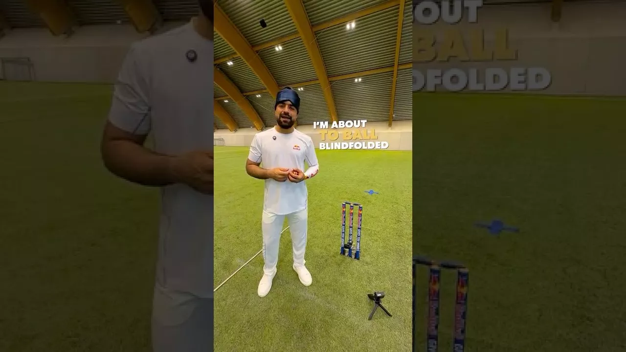 Professional Red Bull cricketer Rashid Khan tries to bowl and hit the wickets while blindfolded
