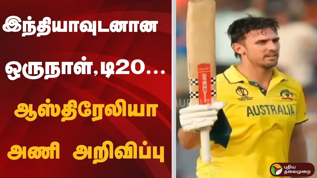 Australia has announced its squad for the ODI and T20 series against India. This video covers the complete Australia team announcement, key players selected, match schedule details, and expert analysis of the upcoming IND vs AUS cricket series. 🏏 Key Highlights: ✅ Australia Squad Announcement for India Series ✅ ODI and T20 Team Selection ✅ Star Players and New Additions ✅ Match Schedule and Venue Details ✅ Team Analysis and Predictions ✅ Cricket News Updates Follow Puthiya Thalaimurai WhatsApp Channel Link👉 https://www.whatsapp.com/channel/0029Va8fbRm77qVSYqtBAl0D _____________________________________________ Connect with Puthiya Thalaimurai TV Online: SUBSCRIBE to get the latest Tamil news updates: https://www.youtube.com/channel/UCmyKnNRH0wH-r8I-ceP-dsg?sub_confirmation=1 Nerpada Pesu: https://www.youtube.com/playlist?list=PL-RDFpvLYFEWCShKiMrhdEw7wL434UOjl Visit Puthiya Thalaimurai TV WEBSITE: https://www.puthiyathalaimurai.com/ Like Puthiya Thalaimurai TV on FACEBOOK: https://www.facebook.com/unsupportedbrowser Follow Puthiya Thalaimurai TV TWITTER: https://x.com/PttvNewsX Puthiyathalaimurai Itunes: https://apps.apple.com/in/app/puthiya-thalaimurai-live-24x7/id716697040 Puthiyathalaimurai Android: https://play.google.com/store/apps/details?id=com.nua.puthiyathalaimuraiui&hl=en About Puthiya Thalaimurai TV: Puthiya Thalaimurai TV is a 24x7 live news channel in Tamil providing latest news, sports updates, business news, and international affairs. Stay updated with breaking cricket news, match analysis, and sports coverage.