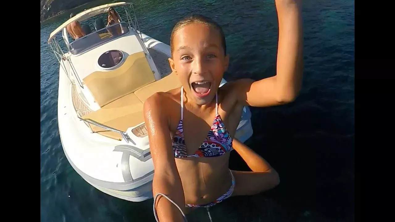 Carla and Lola diving and swimming underwater in the sea. We had a lot of fun before school starts swimming just next to our boat. Fun swimming underwater and diving off the boat.