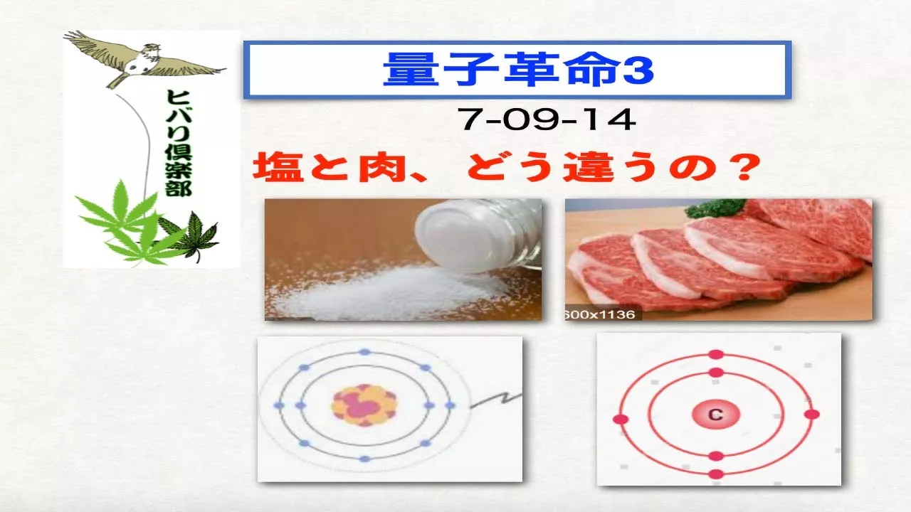 【量子革命(3)「塩と肉、どう違うの?」】 塩と肉 まったく違う 存在に思えるこの二つ しかし、 科学の視点から見ると.. 「電子と原子核」 という同じ構造で 出来ていることが分かります。 ○ 肉も塩も、 「同じ電子と核」で構成 ○ 違いは「数だけ」 という驚きの真実 ○ 私たちの常識を 覆す科学の視点 今回の動画では、 100年前に 解明された原子構造から 「塩と肉の共通点..」 を分かりやすく解説します。 科学の面白さと奥深さを、 ぜひ最後までご覧ください。