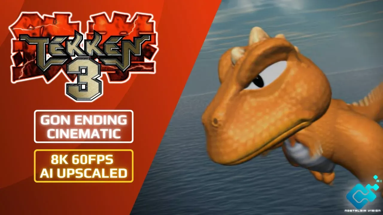 Upscaled & enhanced original video using AI. Increased resolution to: 7,680 × 4,320. Increased framerate to: 60 Frames per second. Corrected colors. Cleaned up sound. Find TEKKEN 3 Original Soundtrack here: https://www.youtube.com/playlist?list=PLAmT-qH5gWJKpa0YLG1aAIrpzNiorQ92F Check these out too: TEKKEN 1 Cutscenes 8K 60FPS: https://www.youtube.com/playlist?list=PLodPTPXmGm2ldunWOVu23ydJP6U_v7rF7 TEKKEN 2 Cutscenes 8K 60FPS: https://www.youtube.com/playlist?list=PLodPTPXmGm2n7jbMAcI_gRJ-KV5tbD0tJ TEKKEN 3 Cutscenes 8K 60FPS: https://www.youtube.com/playlist?list=PLodPTPXmGm2nWT2UK9cqH7UV_6_g-pinJ TEKKEN 4 Cutscenes 8K 60FPS: https://www.youtube.com/playlist?list=PLodPTPXmGm2nw13P0_jM7hbjZBqHZYe-1 TEKKEN 5 & Dark Resurrection Cutscenes 8K 60FPS: https://www.youtube.com/playlist?list=PLodPTPXmGm2n3xHI6Uuxf0rfc8IOMWQsZ TEKKEN 6 Cutscenes 8K 60FPS: https://www.youtube.com/playlist?list=PLodPTPXmGm2kX2rB8i43In3yQLpgXLbON TEKKEN 7 Cutscenes 8K 60FPS: https://www.youtube.com/playlist?list=PLodPTPXmGm2k5donNL01r6ItCJ8zxcRfb TEKKEN 8 Cutscenes 8K 60FPS: https://www.youtube.com/playlist?list=PLodPTPXmGm2kFTfzfXF-Bub0UZAnqnm1m TEKKEN TEKKEN Tag Tournament Cutscenes 8K 60FPS: https://www.youtube.com/playlist?list=PLodPTPXmGm2mhPoJvgpP5dmV-eHjFxAy- TEKKEN TEKKEN Tag Tournament 2 Cutscenes 8K 60FPS: https://www.youtube.com/playlist?list=PLodPTPXmGm2mMOL2d9zgrGGPxSg_U5R8V Subscribe & like for more. You can also support me here if you like: https://ko-fi.com/nostalgiavisionai Gon is one of the three hidden playable characters, along with Doctor Bosconovitch and Tiger Jackson. His appearance seems purely ornamental, considering no motive is given for him participating in the third King of Iron Fist Tournament.