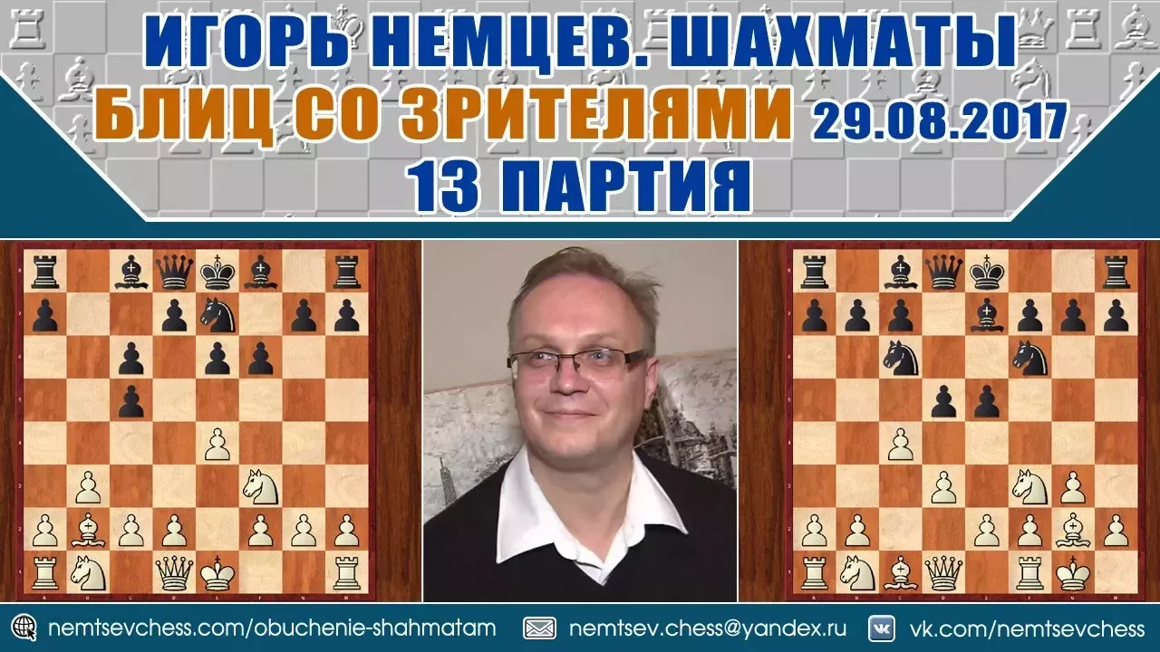 Подписаться на канал - https://goo.gl/oESyyJ Обучение шахматам - http://goo.gl/fo5EOw Мой интернет-магазин - http://chess-video.ru/ Поддержите наш канал - http://www.nemtsevchess.com/donate Используйте промокод nemtsevguru при регистрации на https://learn.chessking.com/ и получите 7 дней бесплатного пользования всеми обучающими курсами! Онлайн-блиц 7. 29.08.2017. Игорь Немцев Плейлист блица - https://www.youtube.com/playlist?list=PL2Tjkoh-v5cC-iJpGD96Je9oaEBuvBRNm Открытые уроки Игоря Немцева - https://goo.gl/pCi0W9 Еще много интересного - https://www.youtube.com/channel/UCkvVQ19j7t30eRSDWeJCbUg/playlists Смотрите в прямом эфире! На Youtube - https://www.youtube.com/channel/UCkvVQ19j7t30eRSDWeJCbUg/live На Twitch - https://www.twitch.tv/gurunemtsev На Goodgame - https://goodgame.ru/channel/nemtsevchess/ Автор видео - Игорь Немцев, мастер ФИДЕ, тренер высшей категории Сайт Игоря Немцева - http://www.nemtsevchess.com Пишите мне - nemtsev.chess@yandex.ru Обучающие видео Игоря Немцева на канале Сергея Шипова - https://goo.gl/plX4uH Подписывайтесь на канал! Делитесь в соцсетях! Пишите комментарии! Ставьте лайк! Поддержите канал! http://www.nemtsevchess.com/donate