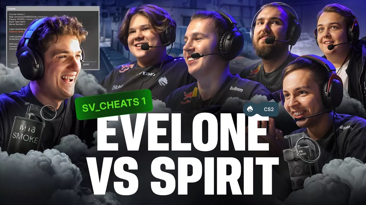 Сегодня наша команда сразится против Эвелона в формате 1x5! Смогут ли наши парни впятером обыграть Вадима, который подготовил несколько сюрпризов, чтобы уравнять свои шансы? Наши контакты: https://vk.com/team_spirit — Паблик VK https://t.me/TSpiritCS - Telegram https://teamspirit.gg/ — Официальный сайт https://twitter.com/Team__Spirit — Twitter https://www.facebook.com/unsupportedbrowser — Страница FB https://www.facebook.com/unsupportedbrowser — Instagram