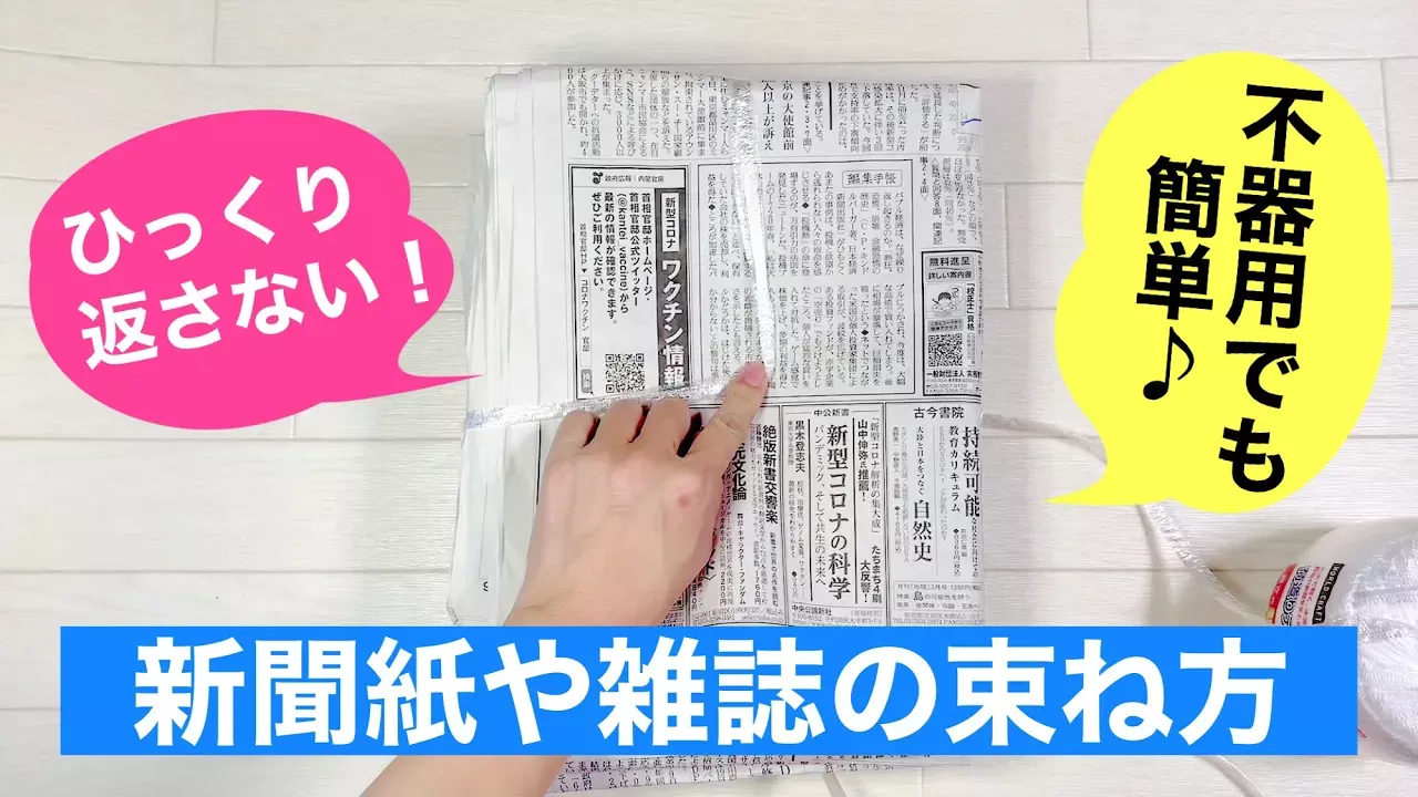 引越しシーズンなので、新聞紙や雑誌の縛り方をご紹介します。 ひっくり返さなくても縛れるので、不器用さんでも簡単にできます(^^) 裏返さないので、崩れることもありません。 力の弱い女性や高齢者の方にオススメです。 ぜひお試しくださいね♪ (あまりにも我が家の長男の束ね方が下手なことに驚き、この動画を取ることにしました!笑)