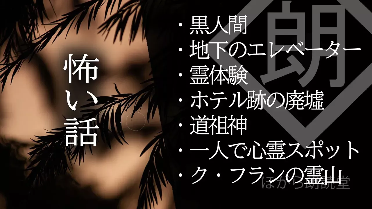 00:00:00 OP 00:00:10 黒人間 00:06:00 地下のエレベーター 00:11:05 霊体験 00:16:00 ホテル跡の廃墟 00:22:44 道祖神 00:27:59 一人で心霊スポット 00:33:25 ク・フランの霊山 リクエストや質問、怖い話等の投稿はこちらまで。(マシュマロ質問箱) https://marshmallow-qa.com/hogara_rodoku?utm_medium=url_text&utm_source=promotion ほがら朗読堂 ニコニコ支店 https://www.nicovideo.jp/user/125018693 twitterはこちら https://twitter.com/hogara_rodoku -------------------------- #ほがら朗読堂#朗読