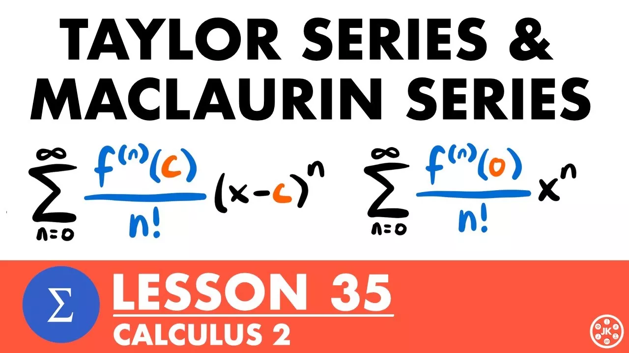 How to Represent Functions as Taylor Series & Maclaurin Series (Calculus 2 Lesson 35) In this video we learn about Taylor series and Maclaurin series (special types of power series) and how to represent functions as Taylor and Maclaurin series. Additionally, we look at some common Maclaurin series and how they can be used to represent functions as Maclaurin series. 🖥️ Join My Membership Site: https://www.jkmathematics.com//plus This video series is designed to help students understand the concepts of Calculus 2 at a grounded level. No long, boring, and unnecessary explanations, just what you need to know at a reasonable and digestible pace, with the goal of each video being shorter than the average school lecture! Calculus 2 requires a solid understanding of calculus 1, precalculus, and algebra concepts and techniques. This includes limits, differentiation, basic integration, factoring, equation manipulation, trigonometric functions, logarithms, graphing, and much more. If you are not familiar with these prerequisite topics, be sure to learn them first! Video Chapters: 0:00 Finding the Form of a Taylor Series 15:31 Form of a Taylor Series 18:02 Form of a Maclaurin Series 20:55 Example - e^x 26:55 Example - sin(x) 39:50 Example - cos(x) using sin(x) 43:10 Common Maclaurin Series 45:32 Example - (x^2)*sin(3x) 50:11 Outro Corrections: 43:19 Note: for ln(1+x), the series should start at n=1 not n=0 since the n=0 term would be undefined due to 0 in the denominator. My apologies on this typo! 📝 Examples Video: https://www.youtube.com/watch?v=jbrhLbzlKlw ⏩ Next Lesson: https://www.youtube.com/watch?v=yixA-hiOahY 📺 Calculus 2 Playlist: https://www.youtube.com/playlist?list=PLHdRLeAbIZE7KQ922piyRIDAj30XYcOIu 📺 Calculus 1 Playlist: https://www.youtube.com/playlist?list=PLHdRLeAbIZE6krGDQthaQRpLZFLD4ob54 📝 Extra Example Video: https://www.youtube.com/watch?v=N8nSJnSIess 🌐 Visit My Website: https://www.jkmathematics.com ⚡️Math Products I Recommend⚡️ Graphing Calculator: https://www.amazon.com/Texas-Instruments-TI-Nspire-Graphing-Calculator/dp/B07RL7HM5V?language=en_US Non-Graphing Calculator: https://www.amazon.com/Texas-Instruments-TI-30X-Scientific-Calculator/dp/B00SWWKEAY?language=en_US Financial Calculator: https://www.amazon.com/s?k=ba+2+plus&language=en_US Graphing Paper: https://www.amazon.com/KAISA-Punched-Loose-Leaf-Binders-150sheet/dp/B096V2RYR2?sp_csd=d2lkZ2V0TmFtZT1zcF9hdGY&language=en_US College Rule Paper: https://www.amazon.com/Mead-Filler-College-Punched-15326/dp/B000068UWB?language=en_US My Favorite Pencil: https://www.amazon.com/Quick-Mechanical-Pencil-Assorted-Barrel/dp/B07FC5NGBX?language=en_US My Favorite Erasers: https://www.amazon.com/Prismacolor-Premier-Magic-Erasers-3-Count/dp/B005ENNEJW?language=en_US Calculus Workbook: https://www.amazon.com/Essential-Calculus-Practice-Workbook-Solutions/dp/1941691242?sp_csd=d2lkZ2V0TmFtZT1zcF9hdGY&language=en_US ⚡️Textbooks I Use⚡️ Calculus 1 & 2: https://www.amazon.com/Calculus-Ron-Larson/dp/0547167024?language=en_US Calculus 3: https://www.amazon.com/Multivariable-Calculus-Ron-Larson/dp/1285060296?language=en_US Financial Mathematics: https://www.amazon.com/Mathematics-Investment-Credit-ACTEX-Academic/dp/1566987679?language=en_US ⚡️My Recording Equipment⚡️ iPad Air: https://www.amazon.com/Apple-iPad-Air-5th-Generation/dp/B09V3HJBN3?sp_csd=d2lkZ2V0TmFtZT1zcF9hdGY&th=1&language=en_US Apple Pencil (Gen 2): https://www.amazon.com/Apple-MU8F2AM-A-Pencil-Generation/dp/B07K1WWBJK?sp_csd=d2lkZ2V0TmFtZT1zcF9hdGY&language=en_US Tablet Desk Stand: https://www.amazon.com/OMOTON-Adjustable-Multi-Angle-Aluminum-Convenient/dp/B015FH0XKE?sp_csd=d2lkZ2V0TmFtZT1zcF9hdGY&th=1&language=en_US External Hardrive: https://www.amazon.com/Toshiba-HDTB420XK3AA-Canvio-Portable-External/dp/B079D3D8NR?language=en_US (Commissions earned on qualifying purchases) Find me on social media: Facebook: https://www.facebook.com/unsupportedbrowser Twitter: https://twitter.com/jk_mathematics Instagram: @jk_mathematics Found this video to be helpful? Consider giving this video a like and subscribing to the channel! Thanks for watching! Any questions? Feedback? Leave a comment! -Josh from JK Math #calculus Disclaimer: Please note that some of the links associated with the videos on my channel may generate affiliate commissions on my behalf. As an amazon associate, I earn from qualifying purchases that you may make through such affiliate links.