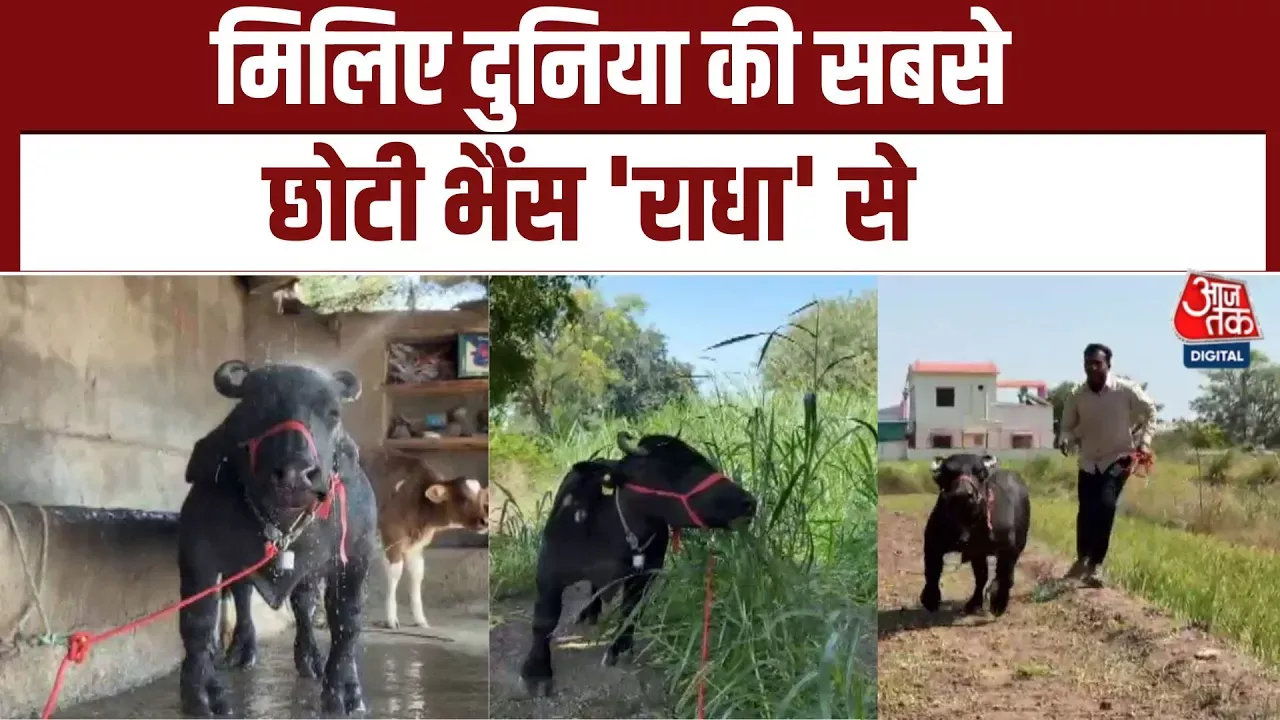 सातारा ज़िले के माण तालुके के मलवडी गाँव की ‘राधा’ भैंस ने इतिहास रच दिया है। ‘राधा’ का नाम गिनीज बुक ऑफ वर्ल्ड रिकॉर्ड्स में दुनिया की सबसे छोटी जिंदा पालतू भैंस के रूप में दर्ज किया गया है। ‘राधा’ अपनी ठेंगनी कदकाठी और प्यारी अदाओं के कारण हर प्रदर्शनी का आकर्षण बनी हुई है। किसान त्र्यंबक बोराटे के घर 19 जून 2022 को जन्मी ‘राधा’ की ऊँचाई सिर्फ 83.8 सेंटीमीटर (2 फीट 8 इंच) है। Welcome to Aaj Tak Digital — India’s No.1 Subscribed Hindi News Channel. आजतक के साथ देखिये देश-विदेश की सभी महत्वपूर्ण और बड़ी खबरें | Watch the latest Hindi news Live on the World's Most Subscribed News Channel on YouTube. #LatestNews #Aajtak #HindiNews Aaj Tak News Channel: आज तक भारत का सर्वश्रेष्ठ हिंदी न्यूज चैनल है । आज तक न्यूज चैनल राजनीति, मनोरंजन, बॉलीवुड, व्यापार और खेल में नवीनतम समाचारों को शामिल करता है। आज तक न्यूज चैनल की लाइव खबरें एवं ब्रेकिंग न्यूज के लिए बने रहें । #hindinews #newsinhindi #hindisamachar #breakingnews #aajtak #samachar #news अधिक समाचारों के लिए यहां क्लिक करें: https://www.youtube.com/@aajtak?sub_confirmation=1 About Channel: Aaj Tak is India's Best Hindi News Channel. Aaj Tak News Channel Covers The Latest News, Breaking News, Politics, Entertainment News, Business News and Sports News. Stay tuned for all the News in Hindi. Join Aaj Tak Whatsapp Channel: https://www.whatsapp.com/channel/0029Va7Rxc32ER6hBAuIL222 Watch Our Prime Shows on Aaj Tak: Vardaat — Real-life crime stories that shook the nation https://www.youtube.com/playlist?list=PLP-nGFpz3fa_WLJqwFuJlwfhAepqcOd3I&si=tJXqsrKVHOvxy4BJ Black & White with Anjana Om Kashyap - Big debates, sharp opinions, and political analysis https://www.youtube.com/playlist?list=PLP-nGFpz3fa_aLomcIgk-c_dRhuYOBphp&si=1wAaQfSUIfZ0OrIy Halla Bol — The nation’s most powerful debate on today’s top issues https://www.youtube.com/playlist?list=PLP-nGFpz3fa-ZT2YKfqzI-ayeZV0n8qAh&si=nnRN8_9u02p8QlG_ DasTak 2025: https://www.youtube.com/playlist?list=PLP-nGFpz3fa9q68r5rws67UxSUdhcHupG&si=QMiiUiKyXUP76DUk ताज़ा खबरों और LIVE अपडेट्स के लिए जुड़े रहें Aaj Tak के साथ - https://www.youtube.com/live/Nq2wYlWFucg https://www.youtube.com/live/gH6ftEJDLGo Download Aaj Tak APP, India’s No.1 Hindi News App: https://www.aajtak.in/livetv Subscribe to Aaj Tak YouTube Channel: https://www.youtube.com/c/aajtak Visit Aaj Tak website: https://www.aajtak.in/ Follow us on Facebook: https://www.facebook.com/unsupportedbrowser Follow us on Twitter: https://twitter.com/aajtak Follow us on Instagram: https://www.facebook.com/unsupportedbrowser Subscribe our other Popular YouTube Channels: India Today: https://www.youtube.com/c/indiatoday SoSorry: https://www.youtube.com/c/sosorrypolitoons Good News Today: https://www.youtube.com/c/GoodNewsTodayOfficial AajTak AI: https://www.youtube.com/channel/UClZU5ouD9LkfgrelmL2auTg