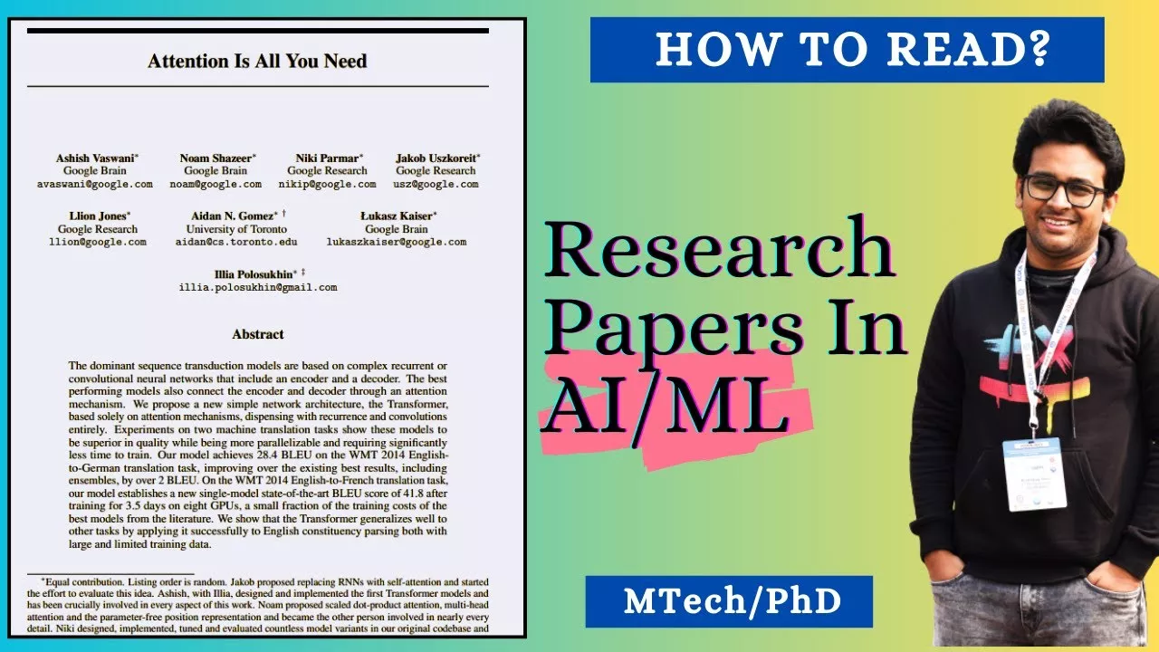 In this video, I discussed how to read ML papers effectively. Hopefully, it will be helpful for aspiring Phd and MTech students. Timecodes 0:00 - Introduction. 3:33 - 1) Title and Authors' Affiliation 5:17 - 2) Abstract 7:25 - 3) Introduction 8:21 - 4) Related Work 9:33 - 5) Methodology 11:15 - 6) Experiments/Results/Discussion 13:24 - 7) Conclusion 13:46 - 8) References 13:58 - 9) Appendix/Supplementary 15:31 - Tips and Tricks 17:35 - Sharing Personal Experiences 20:41 - Conclusion