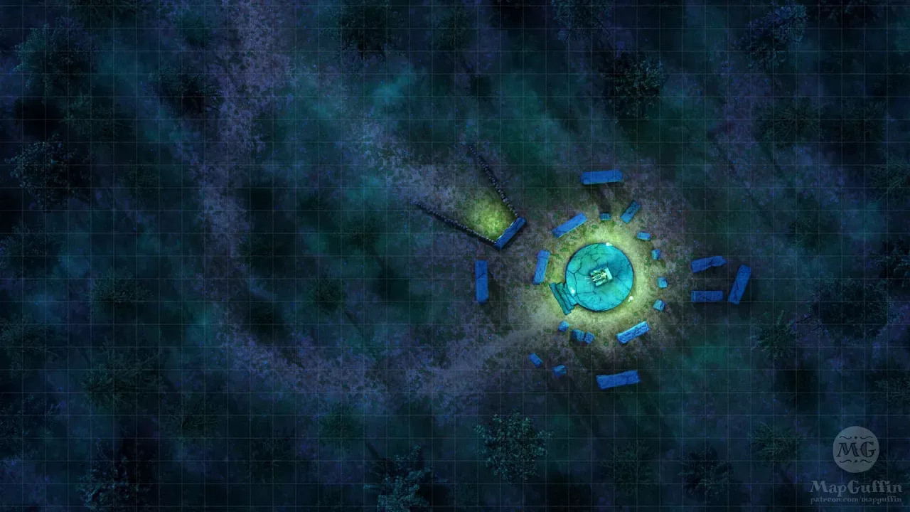 Just in time for the spooky season, which as an Aussie is not something I normally note down in my calendar, I thought it was time to tackle another one of the map classics, the henge. There is also a below-ground layer of this battlemap, a sample of this can be found here: https://www.youtube.com/watch?v=zI-VursgOnI As normal the free static version of the map can be found along with the perspective views on my patreon: https://www.patreon.com/posts/43206433 If you like this and want more content for tabletop games why not check out my patreon for static maps, perspective views, alternate versions and more! www.patreon.com/mapguffin If you’re appreciating my stuff and want to help me make more, feel free to donate a dollar or two to help me fund my electricity bill, Adobe account and keep the wife happy with a Lamb Yiros whilst I work. ---------------------------------------------------------------------------------------------------------------------- Like the fabled sirens of the high seas the trio of flaming orbs swirl entrancingly through the fog, bathing the hilltop and henge in their eerie glow. Many stories are told of the body that lies beneath them. Some tell claims of an ancient wizard king who once ruled these lands before catching the ire of a coven of cultists, others of a lonely traveller who sat down to rest to never rise again. Regardless of assumptions of the identity of these bones one thing is agreed upon, nothing good can come from disturbing their rest The same sickly green light emanates from down the ramp, drawing unwary travellers downward towards the door and the under-henge, and whatever eldritch horrors make their home beneath this cursed soil. ----------------------------------------------------------------------------------------------------------------------
