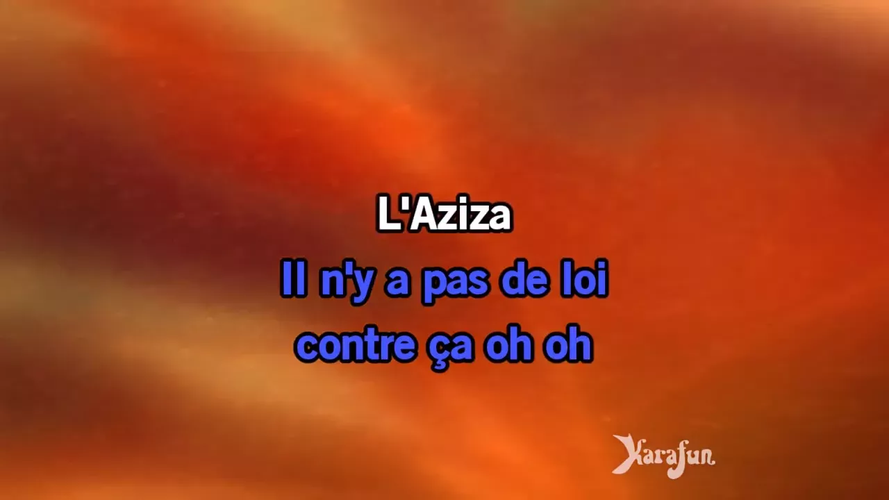 Télécharger MP3 : https://www.version-karaoke.fr/playback-mp3/daniel-balavoine/l-aziza.html Chanter en ligne : https://www.karafun.fr/karaoke/daniel-balavoine/l-aziza/ * Cette version contient un guide vocal d'apprentissage à faible volume. La version karaoké sans guide vocal est disponible sur www.karafun.fr. Cet enregistrement est une reprise de L'Aziza rendu célèbre par Daniel Balavoine - Le titre proposé est un Playback et non la musique originale, il n'est pas chanté par Daniel Balavoine. Cette version instrumentale/playback contient un guide vocal, les paroles et les choeurs. Toutes les œuvres utilisées sur les chaînes KaraFun sont exploitées sous licence en accord avec les détenteurs de droits (composition musicale, ré-enregistrement sonore).