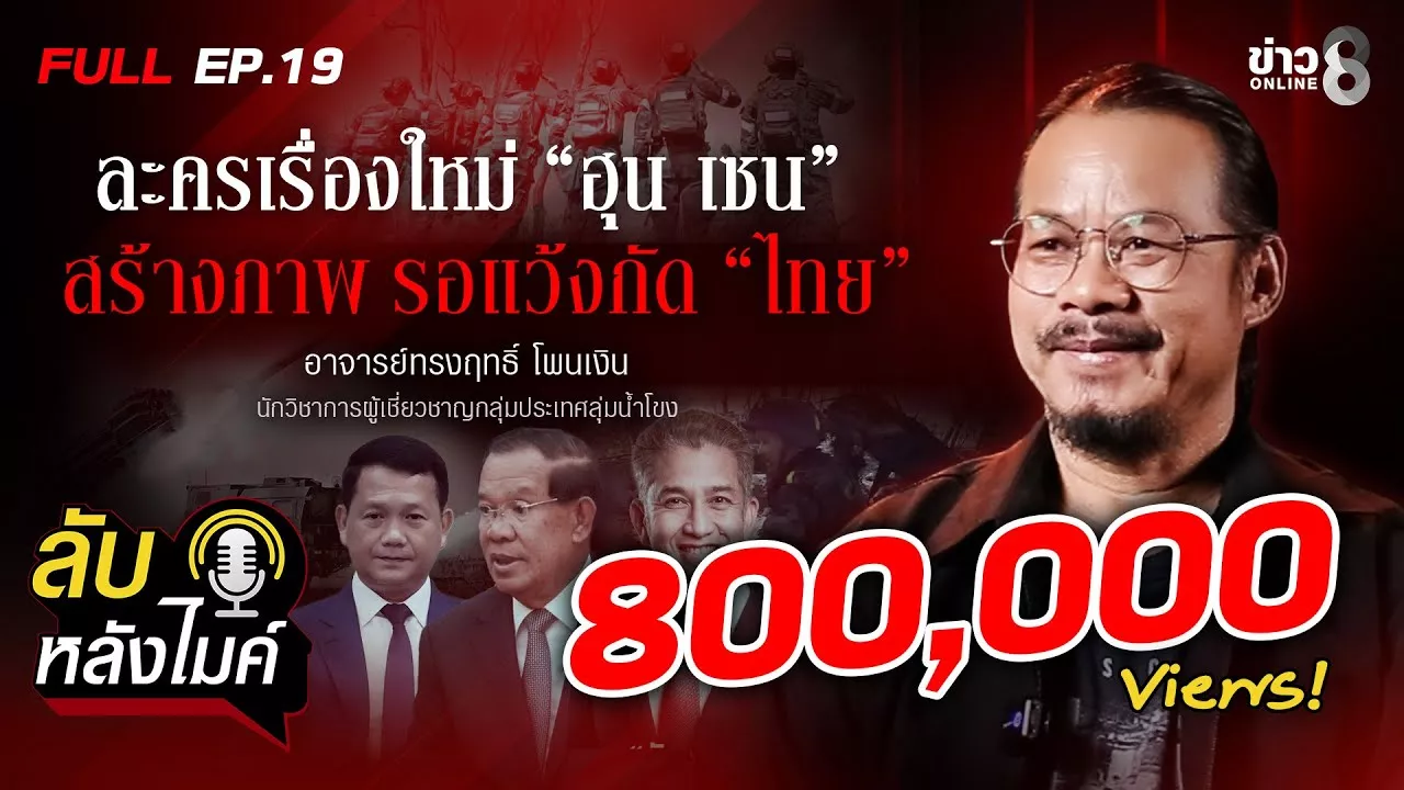 "ทรงฤทธิ์" เชื่อ พล็อตเรื่องใหม่ "ฮุนเซน" การละคร? สร้างภาพ รอแว้งกัด “ไทย” ปัญหาชายแดนจะจบอย่างไร? . โดยมุมมองจาก อาจารย์ทรงฤทธิ์ โพนเงิน นักวิชาการผู้เชี่ยวชาญกลุ่มประเทศลุ่มน้ำโขง . "รายการลับหลังไมค์" ลงคลิปใหม่ ทุกวันเสาร์ เวลา 8.00 น. (สัปดาห์ที่ 2 และ 4 ของเดือน) . . 📌สนใจลงโฆษณาติดต่อ Email : onlinenewsch8@rs.co.th . 👉 มาสมัครเป็นสมาชิกข่าวช่อง8 : https://www.youtube.com/channel/UC6x41swVZP3rEmy-ODxLMFA/join . 📌 อย่าลืมกดติดตาม & กดกระดิ่ง 🔔 ได้ที่ : https://www.youtube.com/channel/UC6x41swVZP3rEmy-ODxLMFA?sub_confirmation=1 . 👉 ถ้าไม่อยากตกเทรนด์ ให้เราส่งตรงข่าวครบเครื่อง คลิกเลย‼ Line Official : https://page.line.me/249dzgap?openQrModal=true . 📌 ช่องทางเพิ่มเติม : . Website : http://www.thaich8.com Facebook : https://www.facebook.com/unsupportedbrowser Twitter : https://twitter.com/thaich8news Instagram : https://www.facebook.com/unsupportedbrowser Tiktok : https://www.tiktok.com/@thaich8_news