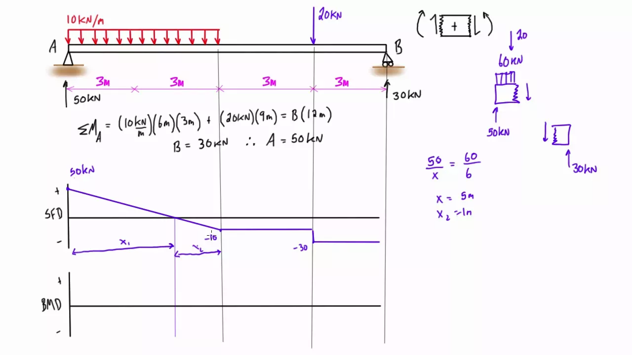 Check out http://www.engineer4free.com/structural-analysis for more free structural analysis tutorials. The course covers shear force and bending moment diagram review, method of superposition, moment area method, force method, displacement method, slope deflection method, and 3 moment equation. This tutorial goes over how to draw the shear force diagram, bending moment diagram, and deflected shape of a simply supported beam with a distributed load and a point load. If you found this video helpful, please consider supporting my work on Patreon: https://www.patreon.com/cw/Engineer4Free Looking for software? I highly recommend checking out SkyCiv. They make a full suite of online structural analysis software and tools that are useful for both students and professionals, including calculators for beams, trusses, frames, moment of inertia and more. It’s great for checking your work: https://skyciv.com/?cc=e4f_r Don’t forget to subscribe on YouTube and join the Engineer4Free mail list: Subscribe: https://www.youtube.com/user/engineer4free?sub_confirmation=1 Mail List: http://www.engineer4free.com/newsletter Social Media: Facebook: https://www.facebook.com/unsupportedbrowser Instagram: https://www.facebook.com/unsupportedbrowser Twitter: http://www.twitter.com/engineer4free Thanks for watching, The Struggle Is REAL!
