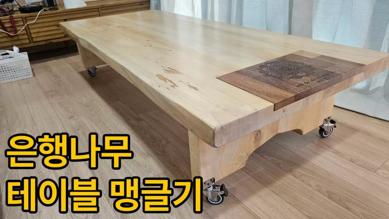 건축주가 재제해 놓은 은행나무를 이용해 입주 선물을 맹글다