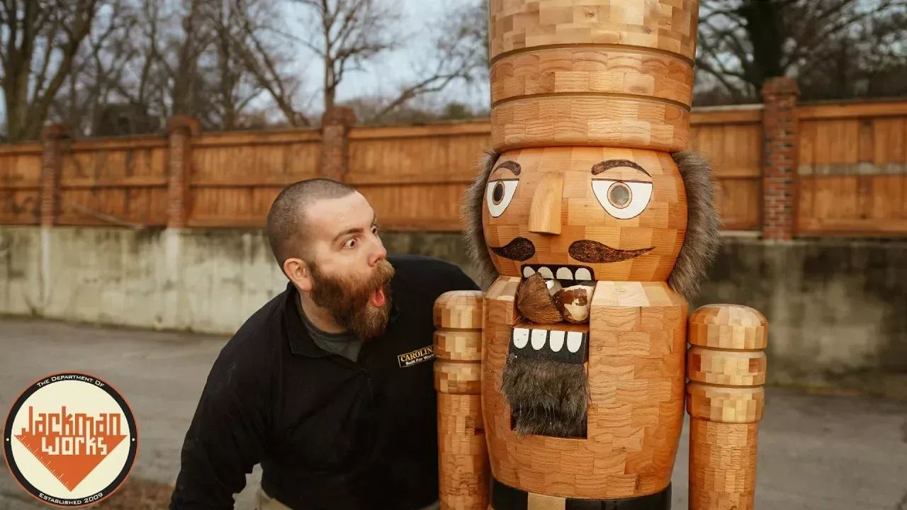 No better way to end the year than a ~2000 piece, 6.5' tall, 150lb CocoNutcracker! Share & Subscribe? https://www.youtube.com/user/jackmancarpentry?sub_confirmation=1 Details! ▼ \\\\\ SUPPORT MY SPONSORS \\\\\ 𝐂𝐚𝐫𝐨𝐥𝐢𝐧𝐚 𝐒𝐡𝐨𝐞 ► 10% off a new pair of boots from Carolina Shoe! Use code "Nutcracker10" at checkout: https://www.carolinashoe.com/ (valid 12/31/18-1/31/19) ► Keep an eye on Carolina Shoe's Instagram to see what they are going to do with this beast: https://www.facebook.com/unsupportedbrowser 𝐈𝐒𝐎𝐭𝐮𝐧𝐞𝐬 ► My exclusive solution for hearing protection in the shop, ISOtunes, get your own here: https://isotunesaudio.com/ 𝐌𝐢𝐭𝐞𝐫𝐒𝐞𝐭 ► This is how I get all those perfect segmented rings: https://miterset.myshopify.com/?aff=30 𝐂𝐨𝐦𝐦𝐮𝐧𝐢𝐭𝐲 𝐅𝐨𝐫𝐤𝐥𝐢𝐟𝐭 ► Most of the materials for this project came from here: https://www.communityforklift.org/ \\\\\ PROJECT SPECIFIC STUFF \\\\\ I just had to kick off the new year with a bang... or with a crack really. The latest #jackmansized creation is this nutcracker that is actually taller than me. He's built almost entirely out of wood and almost entirely out of reclaimed materials. The body, arms, and legs are all different segmented turnings built up from some reclaimed oak and fir beams/studs along with some maple butcher block off cuts. This totals up to being almost 100 segmented rings and 2,000 pieces of wood in total to construct this creation. Add some threaded rods to hold him together, a little bit of accent paint, some Carolina Boots on his feet, and some hair on his head/chin and we have a nutcracker that is capable of cracking coconuts! I'm honestly not sure what Carolina is going to do with this thing. It's incredibly robust though, so I suggested that they use him for testing out the safety toe in their boots, but apparently there are "nutcracker labor laws" I was unaware of. ► Full build article - https://www.jackmanworks.com/life-size-nutcracker/ Notable Materials & Tools used on this build: Materials - Reclaimed oak beams & fir studs: https://www.communityforklift.org/ - Maple butcher block off-cuts - Wood glue: https://www.amazon.com/gp/product/B0002YQ3M8?ie=UTF8&camp=1789&creative=9325&creativeASIN=B0002YQ3M8 - Ledger lock screws: https://www.amazon.com/gp/product/B00LNMST0M?ie=UTF8&creative=9325&creativeASIN=B00LNMST0M - 5 minute epoxy: https://www.amazon.com/gp/product/B0044F59N0?ie=UTF8&camp=1789&creative=9325&creativeASIN=B0044F59N0 - TotalGold paint: https://www.amazon.com/gp/product/B00TKSEW1Q?ie=UTF8&creative=9325&creativeASIN=B00TKSEW1Q - Carolina Logger boots - Tung oil finish: https://www.amazon.com/gp/product/B009LKWLJI?ie=UTF8&camp=1789&creative=9325&creativeASIN=B009LKWLJI - Furry blanket - Nuts: https://www.amazon.com/gp/product/B00HYP2PHU?ie=UTF8&creative=9325&creativeASIN=B00HYP2PHU Tools - Hearing protection: https://isotunesaudio.com/ - Thickness planer: https://www.amazon.com/gp/product/B0000CCXU8?ie=UTF8&camp=1789&creative=9325&creativeASIN=B0000CCXU8 - Fence clamps: https://www.amazon.com/gp/product/B001DSZFMG?ie=UTF8&camp=1789&creative=9325&creativeASIN=B001DSZFMG - Miter gauge angle gauge: https://miterset.myshopify.com/?aff=30 - Hose clamps: https://www.amazon.com/gp/product/B01F8YH4DS?ie=UTF8&camp=1789&creative=9325&creativeASIN=B01F8YH4DS - Drill & driver: https://www.amazon.com/gp/product/B01LZ5I02O?ie=UTF8&camp=1789&creative=9325&creativeASIN=B01LZ5I02O - Silicone glue mat: https://www.amazon.com/gp/product/B06X1GCF7D?ie=UTF8&camp=1789&creative=9325&creativeASIN=B06X1GCF7D - Drum sander: https://www.amazon.com/gp/product/B00020BNAO?ie=UTF8&creative=9325&creativeASIN=B00020BNAO - Metal rulers: https://www.woodpeck.com/woodworking-rules.html - Glue roller applicator: https://www.amazon.com/gp/product/B0076WSG42?ie=UTF8&camp=1789&creative=9325&creativeASIN=B0076WSG42 - Pipe clamps: https://www.amazon.com/gp/product/B00QU03I3A?ie=UTF8&creative=9325&creativeASIN=B00QU03I3A - Wood lathe: https://www.amazon.com/gp/product/B00064NGRE?ie=UTF8&camp=1789&creative=9325&creativeASIN=B00064NGRE - Lathe chuck: https://www.amazon.com/gp/product/B000E0DU8A?ie=UTF8&camp=1789&creative=9325&creativeASIN=B000E0DU8A - Carbide lathe tools: https://www.woodpeck.com/ultra-shear-full-mid-sized-carbide-insert-woodturning-tools.html - Oscillating tool: https://www.amazon.com/gp/product/B01ER7J976?ie=UTF8&creative=9325&creativeASIN=B01ER7J976 - Angle grinder: https://www.amazon.com/gp/product/B0009OR8X4?ie=UTF8&camp=1789&creative=9325&creativeASIN=B0009OR8X4 - TurboPlane grinding disk: https://www.amazon.com/gp/product/B008NA2IJ0?ie=UTF8&creative=9325&creativeASIN=B008NA2IJ0 \\\\\ GENERAL PANDERING LINKS \\\\\ ■ Website - https://www.jackmanworks.com/ ■ YouTube - https://www.youtube.com/jackmanworks ■ Instagram - https://www.facebook.com/unsupportedbrowser ■ Twitter - http://www.twitter.com/jackmanworks ■ GIFs - https://giphy.com/channel/jackmanworks ■ Facebook - https://www.facebook.com/unsupportedbrowser Plans, stickers, t-shirts, etc: http://www.jackmanworks.com/shop/ Shoutout to my top Patreon supporters! - Dave Soetanto - Steven Ingles - Old-School DIY (@gfc62) - Jeffery Nichols - Cory Helmer - Shawn Rose - Riley Conway at Conworks Design - Diane Beene - Scott Brooks - Terre Tulsiak - Greg Gilhooly - Chad from ManCrafting \\\\\ MUSIC \\\\\ ■ Tchaikovsky - Dance Of The Sugar Plum Fairies https://www.youtube.com/audiolibrary/music ■ Björn Skogsberg - What Would Grohl Do ■ Dust Follows - Condor ■ Smartface - Grounded ■ Martin Hall - Now We Do It Again ■ Park Lane - Aim High ■ Hara Noda - Tender ■ Traditional - Russian Dances Music from Epidemic Sound. Use my link for a FREE 30 day trial! http://share.epidemicsound.com/jackman