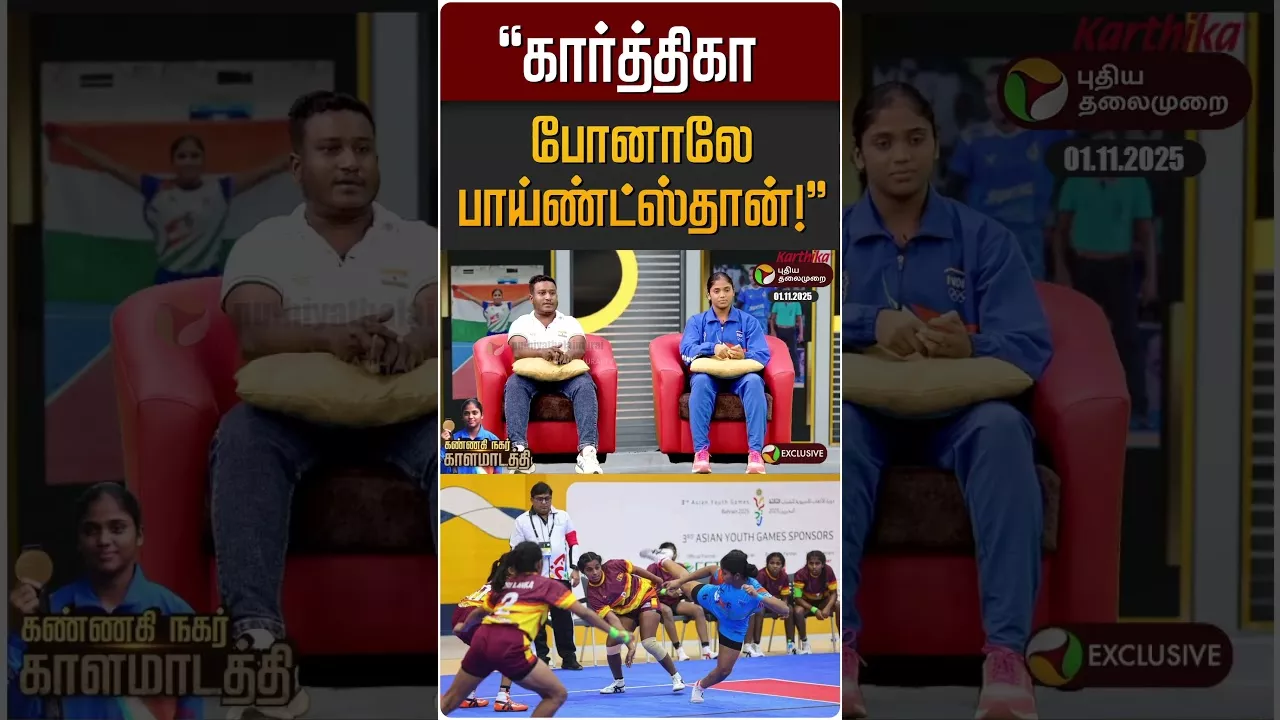 #Puthiyathalaimuraitv "கார்த்திகா போனாலே பாய்ண்ட்ஸ்தான்!" | Kabadi | Karthika Follow Puthiya Thalaimurai WhatsApp Channel Link👉 https://www.whatsapp.com/channel/0029Va8fbRm77qVSYqtBAl0D செய்திகளை உடனுக்குடன் அறிய இணையுங்கள் ! _____________________________________________ Puthiyathalaimurai TV | Puthiyathalaimurai News | Puthiyathalaimurai News Live | Puthiyathalaimurai Live | Tamil News | News Live | Live News | News Live Tamil | News Today | Today News Tamil | Today News Tamil Live | Today News | Live Update | Latest News | TN Govt | CM MK Stalin | Puthiyathalaimurai Breaking | Breaking News Puthiya thalaimurai Live news Streaming for Latest News , all the current affairs of Tamil Nadu and India politics News in Tamil, Tn assembly session, parliament session, National News Live, Headline News Live, Breaking News Live, Kollywood Cinema News, Tamil news Live, Sports News in Tamil, Business News in Tamil & tamil viral videos and much more news in Tamil. Tamil news, Movie News in tamil , Sports News in Tamil, Business News in Tamil & News in Tamil, Tamil videos, art culture and much more only on Puthiya Thalaimurai TV Connect with Puthiya Thalaimurai TV Online: SUBSCRIBE to get the latest Tamil news updates: https://www.youtube.com/channel/UCmyKnNRH0wH-r8I-ceP-dsg?sub_confirmation=1 Nerpada Pesu: https://www.youtube.com/playlist?list=PL-RDFpvLYFEWCShKiMrhdEw7wL434UOjl Visit Puthiya Thalaimurai TV WEBSITE: https://www.puthiyathalaimurai.com/ Like Puthiya Thalaimurai TV on FACEBOOK: https://www.facebook.com/unsupportedbrowser Follow Puthiya Thalaimurai TV TWITTER: https://x.com/PttvNewsX Puthiyathalaimurai Itunes: https://apps.apple.com/in/app/puthiya-thalaimurai-live-24x7/id716697040 Puthiyathalaimurai Android: https://play.google.com/store/apps/details?id=com.nua.puthiyathalaimuraiui&hl=en About Puthiya Thalaimurai TV Puthiya Thalaimurai TV (Tamil: புதிய தலைமுறை டிவி) is a 24x7 live news channel in Tamil launched on August 24, 2011. Due to its independent editorial stance it became extremely popular in India and abroad within days of its launch and continues to remain so till date.The channel looks at issues through the eyes of the common man and serves as a platform that airs people's views.The editorial policy is built on strong ethics and fair reporting methods that does not favor or oppose any individual, ideology, group, government, organization or sponsor.The channel’s primary aim is taking unbiased and accurate information to the socially conscious common man. Besides giving live and current information the channel broadcasts news on sports, business and international affairs. It also offers a wide array of weekend programmes. The channel is promoted by Chennai based New Gen Media Corporation. The company also publishes popular Tamil magazines - Puthiya Thalaimurai and Kalvi.