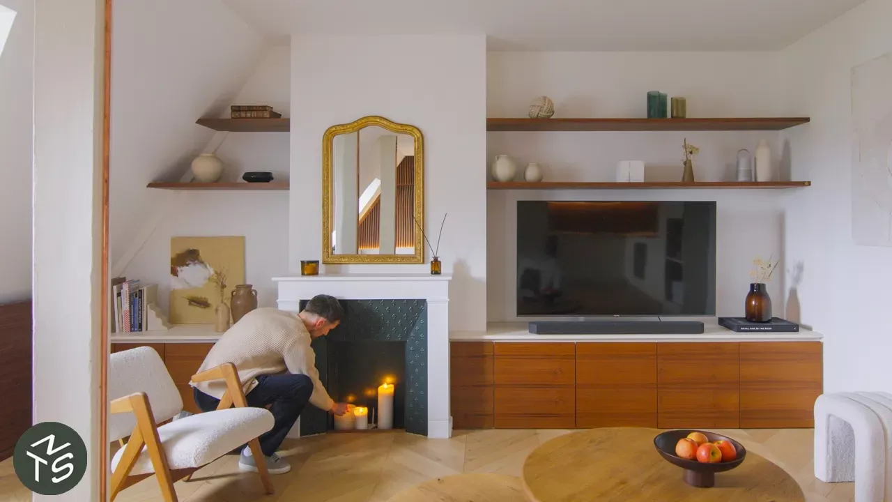 Start your very own website using the free Website Builder from Odoo https://www.odoo.com/r/pCdz In the heart of Paris' historic 8th Arrondissement, two 23-year-old designers, one a furniture maker and one a budding architect, transformed a neglected apartment into an elegant, minimalist home with a calming neutral palette and walnut accents throughout. They designed and refurbished much of the space and furniture themselves, preserving its Parisian charm with classic parquet flooring and restoring the original fireplace and radiators. Low cupboards with continuous wood grain line the living room, extending around the fireplace and into the bedroom to form the bedhead and bedside tables. The sleek kitchen cabinetry seamlessly incorporates a hidden bedroom door and continues into the dining area, where it becomes a built-in bench seat or spare bed for guests. Ep 194 Project Name: Marceau 6 Designer: https://www.resta.studio/ https://www.maisongrunitzky.com/ Produced by New Mac Video Agency Creator: Colin Chee Director: Nam Tran Cinematographer: Matthieu Torres Producer:Lindsay Barnard Editor: Jessica Ruasol Music: Artlist.io Pink Sky by Mansij Fried Eggs by Aves About Last Night by Yestalgia Whenever by Kitrano Share you projects with us- https://www.nevertoosmall.com//submissions Subscribe to our newsletter- https://www.nevertoosmall.com/subscribe Check out our store- https://www.nts-store.com/ Website- https://www.nevertoosmall.com Instagram- https://www.facebook.com/unsupportedbrowser Facebook- https://www.facebook.com/unsupportedbrowser