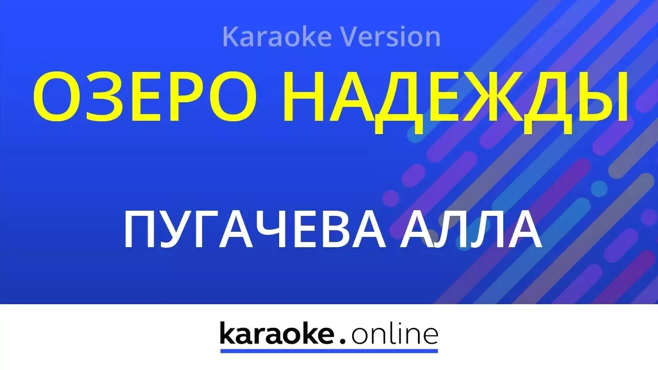 Karaoke version "Озеро надежды" In style of Алла Пугачева Music/lyrics: Николаев И. © ООО «Диджитал прожект» ℗ Karaoke.online Мне влюбиться слишком рано, А быть может, слишком поздно, Никому не верю я, как прежде. Море Счастья обмелело, И река Любви замёрзла, Но осталось озеро Надежды. Море Счастья обмелело, И река Любви замёрзла, Но осталось озеро Надежды... more karaoke and lyrics on https://karaoke.online/