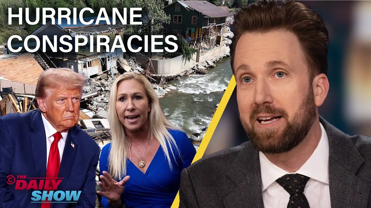 Jordan Klepper unpacks how Trump and the GOP are playing politics with Hurricane Helene, from Trump claiming Biden and Kamala are abandoning affected areas, to Marjorie Taylor Greene blaming the Jews for the storm. 0:00 - Jordan Klepper Opens The Daily Show 0:23 - Trump Sends COVID-19 Tests to Putin 1:34 - Category 5 Hurricane Milton to Hit Florida 2:39 - Trump Spreads Misinformation About Hurricane Relief 4:48 - Conservative Media Also Spreading Lies About Florida Hurricanes 6:28 - False AI Photos Circulate of Children in Hurricane Aftermath 7:59 - Brad McDonald (Michael Kosta) Weighs in on AI Photos Subscribe to The Daily Show: https://www.youtube.com/channel/UCwWhs_6x42TyRM4Wstoq8HA/?sub_confirmation=1 Follow The Daily Show: Twitter: https://twitter.com/TheDailyShow Facebook: https://www.facebook.com/unsupportedbrowser Instagram: https://www.facebook.com/unsupportedbrowser Stream full episodes of The Daily Show on Paramount+: https://www.paramountplus.com/intl/ Follow Comedy Central: Twitter: https://twitter.com/ComedyCentral Facebook: https://www.facebook.com/unsupportedbrowser Instagram: https://www.facebook.com/unsupportedbrowser About The Daily Show: Jon Stewart and The Best F**king News Team host The Daily Show, an Emmy and Peabody Award-winning program analyzing the biggest stories in news, politics, and culture through a sharp, satirical lens. The Daily Show redefined the late night show category on TV and, with an audience of over 51M across social media platforms, has become a launching pad for some of the biggest stars in entertainment. The Daily Show airs weeknights at 11/10c on Comedy Central.
