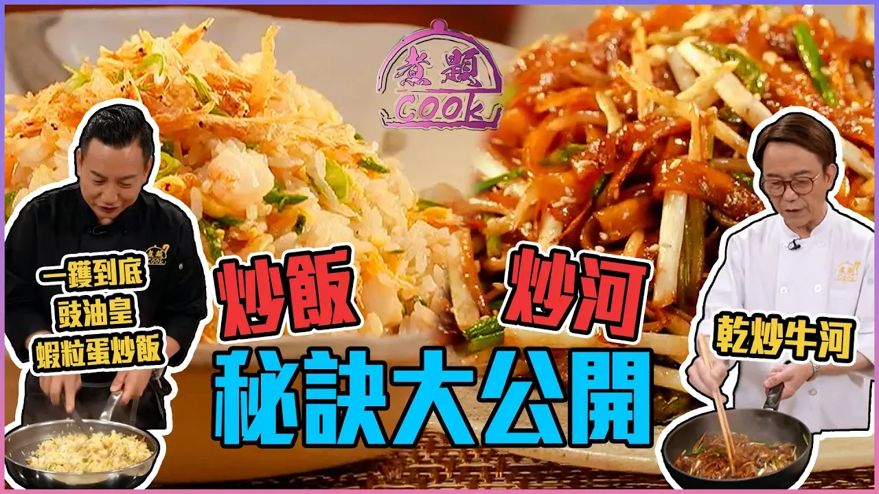 充滿獲氣的炒河粉係屋企好難炒?以前可能係!但係而家有 Ricky 親自示範「乾炒牛河」,風大家都可以係屋企都炒得出好有鑊氣嘅「乾炒牛河」!Jacky 仲教大家自製秘製豉油皇,用來炒「一鑊到底豉油皇蝦粒蛋炒飯 」!想知道點樣可以新手炒飯炒河一TAKE PASS?咁就要快啲睇片喇! 《 煮題Cook 》HOYTV足本重溫傳送門:https://hoy.tv/title?id=27875 《 煮題Cook 》YOUTUBE精華重溫:https://www.youtube.com/playlist?list=PLUyFQGDoSB-jHjPgLdBj5chbvbBB_GIuF ———————————————— Ricky-乾炒牛河 材料: 牛冧肉 100克 肥仔芽菜 100克 河粉 300克 韭菜花 50克 韭黃 30克 薑 20克 蔥 20克 老抽 15克 生抽 10克 做法 A : 1. 將牛冧肉切片 2. 用少許鹽、糖、生抽、生粉醃味,(酒樓版可加入1%梳打粉) , 逐少加入清水拌勻, 最後加入油拌勻,醃製1小時備用 3. 將疊起的河粉撕開,備用 4. 將所有材料切好,備用 做法B: 1. 將牛肉炒至半熟,倒出備用(餘溫會將牛肉煮至約7成熟) 2. 將肥仔芽菜炒30秒殺青,盛起備用 做法C: 1. 鑊內先放入薑絲略炒,再放入蔥、韭黃花和肥芽菜,快炒10秒後關火 2. 放入河粉、生抽、老抽,開大火將河粉炒至透岀焦香味道 3. 最後放入韭黃,將牛肉回鑊,炒勻上碟即成 Jacky-鑊到底豉油皇蝦粒蛋炒飯 秘製豉油皇材料: 薑片 20克(切片) 蒜頭 30克(拍鬆) 唐芹 100克(切段) 洋蔥 80克(切絲) 芫荽 60克(切段) 蔥 60克(切段) 青島貝 20克(洗淨、浸軟) 蝦米 50克(洗淨、浸軟) 水 1500克 調味料: 老抽 30克 美極 25克 生抽 20克 冰糖 15克 蠔油 20克 魚露 40克 豉油皇做法: 1. 將所有材料放入煲中,大火滾約15-20分鐘,至水分剩一半約剩750克,然後用密篩隔去燙渣,成海味蔬菜湯 2. 將調味料倒入海味蔬菜湯中,大火煮開轉中小火,煮滾至冰糖完全溶解後即可,成秘製豉油皇 豉油皇蝦粒蛋炒飯材料: 基圍蝦 600克 冷飯 500克 雞蛋 4隻(打散) 櫻花蝦 15克 蔥花 適量 油 約150克 醃料: 鹽 少許 調味料: 秘製豉油 適量 做法: 1. 基圍蝦去頭、去殼(頭、殼留用,瀝乾水分),然後挑去蝦腸,切粒,再加入少許鹽醃製10分鐘,櫻花蝦放入白鍋中烘香,備用 2. 鍋燒熱,加入油,放入瀝乾水分的蝦頭及蝦殼炒香,再用工具壓出蝦膏,炒出蝦油,然後隔起,成蝦油,備用 3. 先將冷飯弄散,另起一鍋,倒入蝦油燒熱,加入雞蛋快速炒散,然後放入冷飯炒匀,加入蝦粒,炒匀至八成熟,將飯推到鑊的一邊,在鑊底受熱的位置,分次灒入豉油皇與飯炒香,試味可以後,最後灑上蔥花炒匀,上碟後灑上適量櫻花蝦即可趁熱享用 ———————————————— 煮題Cook| Theme Cook 8月4號起 逢 星期一至五 晚上 8點半|HOY TV ———————————————— ------------------------------------------------- Like & Follow 👍👍👍 HOY TV Facebook ► https://www.facebook.com/unsupportedbrowser HOY TV Instagram ► https://www.facebook.com/unsupportedbrowser 有線新聞 Facebook ► https://www.facebook.com/unsupportedbrowser 有線新聞 Instagram ► https://www.facebook.com/unsupportedbrowser 有線生活 Facebook ► https://www.facebook.com/unsupportedbrowser 有線生活 Instagram ► https://www.facebook.com/unsupportedbrowser 有線娛樂 Facebook ► https://www.facebook.com/unsupportedbrowser 有線健康 Facebook ► https://www.facebook.com/unsupportedbrowser