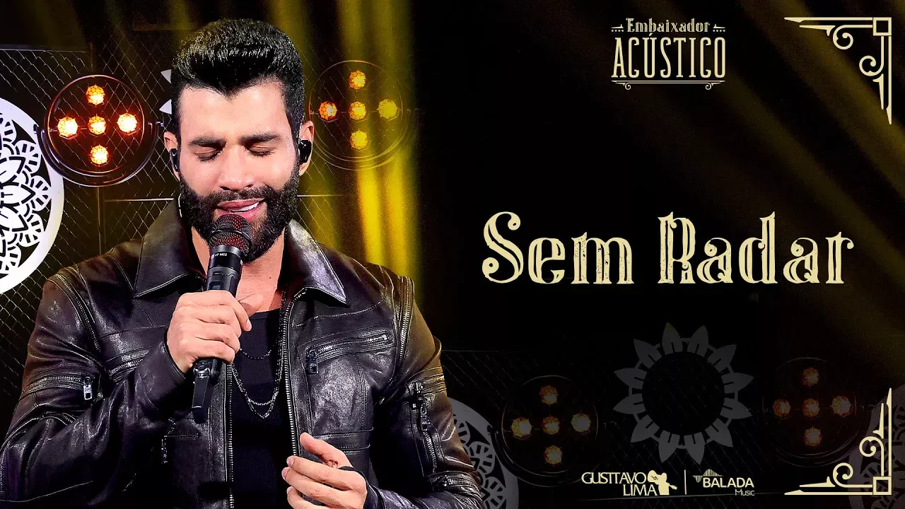 Gravado em Goiânia, o projeto "Embaixador Acústico" de Gusttavo Lima traz uma experiência musical única, onde o artista divide com seus fãs e admiradores suas canções preferidas em versões acústicas. Neste vídeo, Gusttavo Lima interpreta a música "Sem Radar", mostrando toda a sua versatilidade e paixão pela música. Curta essa canção na voz inconfundível do Embaixador! Escute também nas plataformas digitais: SMB.lnk.to/EmbaixadorAcustico Produção Musical: Gusttavo Lima e Newton Fonseca Mixagem e Masterização: Rafael Vargas Direção de vídeo: André Caverna Gravadora: Sony Music Siga Gusttavo Lima nas redes sociais! Facebook: https://www.facebook.com/gusttavolimaoficial/ Youtube: https://www.youtube.com/gusttavolimaoficial Instagram: https://www.instagram.com/gusttavolima/ Twitter: https://twitter.com/gusttavo_lima Site: http://gusttavolima.com.br/