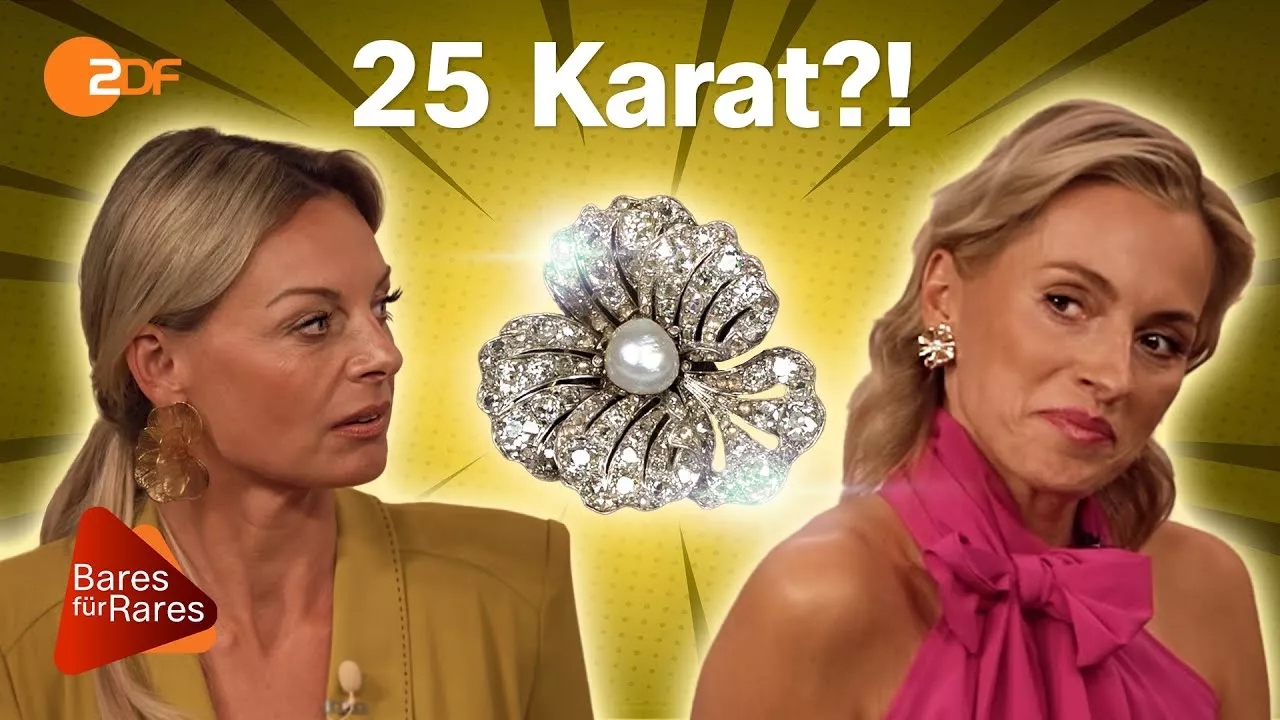 Abonniere diesen tollen Kanal und streame jetzt Bares für Rares in der ZDF-App oder unter: https://www.zdf.de/bares-fuer-rares-880?at_medium=Social%20Media&at_campaign=YouTube&at_specific=BaresfuerRares Als das Verkäuferpaar im Händlerraum die Karat Anzahl dieser Brosche nennt, verschlägt es allen die Sprache! Die funkelnde Brosche wurde um 1900 aus 585er Gold gefertigt und anschließend mit Platin überzogen. Sie ist nach dem Abbild eines Stiefmütterchens gearbeitet und laut Wendela eine echte Besonderheit! Nicht nur, dass das Schmuckstück ein Unikat ist – die fünf Blütenblätter können auch aufgefächert, ausgehängt und neu angeordnet werden. In der Mitte der Blütenbrosche prangt eine echte Naturperle und auf den Blättern zählt Wendela circa 130 Diamanten im Old Mine Cut. Das Verkäuferpaar kann es kaum fassen, als Wendela offenbart, dass sie zusammengerechnet auf 25 Karat kommt! Somit wird der Wunschpreis von 10.000 Euro weit überschritten: Wendela stellt 16.000 bis 18.000 Euro in Aussicht! Und auch die Händlerrunde kann es kaum fassen, als sie die Karat Anzahl hört – werden sie entsprechend gigantische Gebote auf den Tisch legen? Bares für Rares XXL vom 13.08.2025: https://www.zdf.de/play/shows/bares-fuer-rares-xxl-100/bares-fuer-rares-xxl-vom-13-august-2025-100?at_medium=Social%20Media&at_campaign=YouTube&at_specific=BaresfuerRares 00:00 Familienerbstück 01:06 25 Karat?! 06:16 Selbstbewusster Wunschpreis 07:50 „Die macht Wind!“ 09:59 Schock um Diamantfeuerwerk! #BaresfürRares auf Facebook: https://www.facebook.com/unsupportedbrowser #BaresfürRares auf Instagram: https://www.facebook.com/unsupportedbrowser #BaresfürRares auf TikTok: https://www.tiktok.com/@baresfuerrareszdf