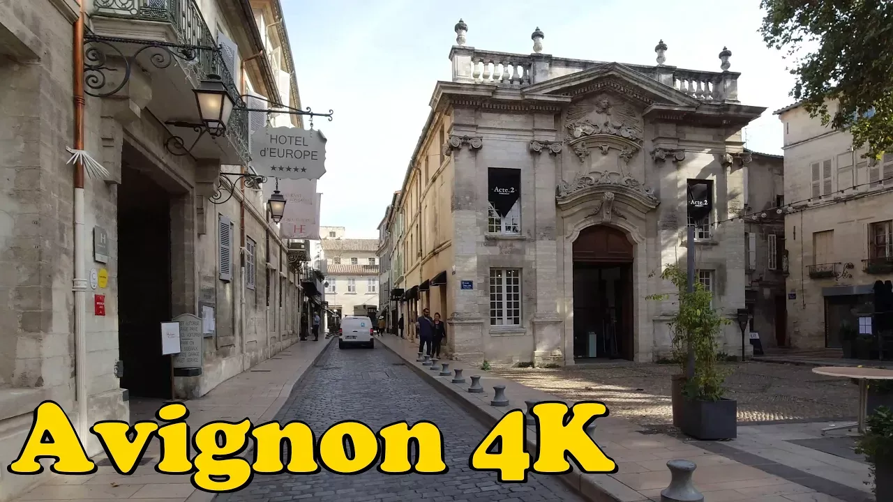 Avignon, France Walking tour 4K. October 11, 2022. Avignon is one of the most beautiful cities in Provence, the main city of the Vaucluse department with a beautiful old town and an arched bridge over the river, the symbol of the city. The history of the city changed when the popes moved here. What remains from that era is the grandiose Palais des Papes, a UNESCO World Heritage Site, one of France's most popular attractions. The city is located on the left bank of the Rhone River. It is also home to one of the largest international annual theater festivals.