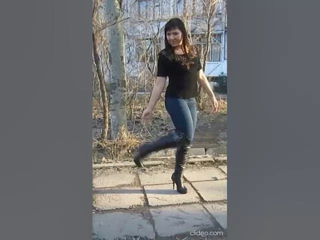 Again is Masha walking in boots, this time at a nice afternoon-walk. She really looks pretty nice in this casual, but hot outfit…
