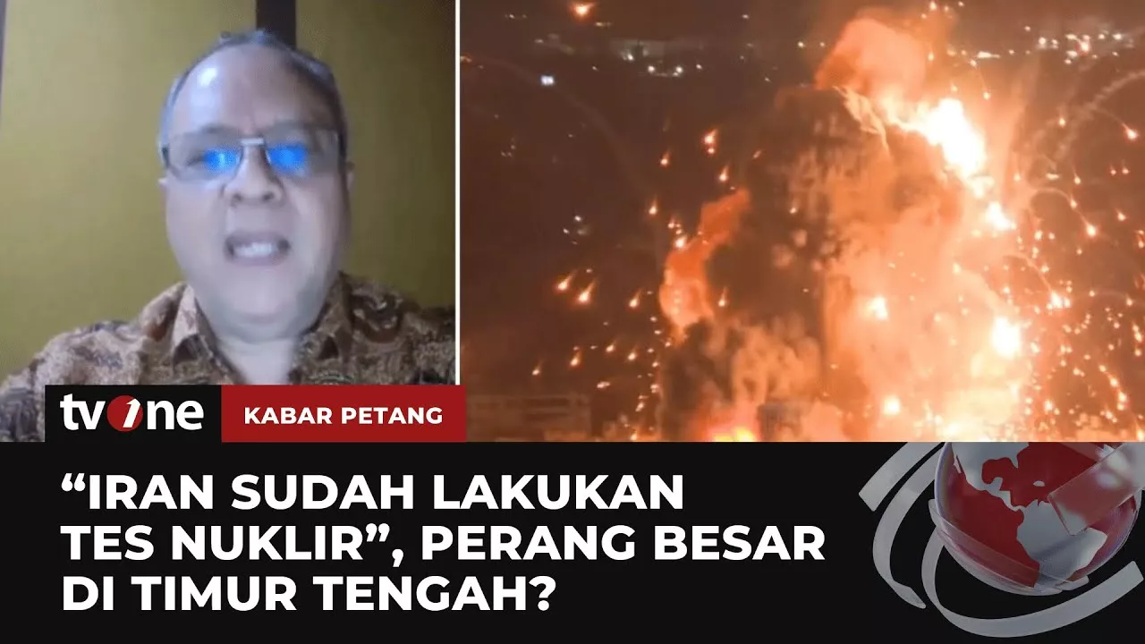 Kabar Petang, Jakarta, https://www.tvonenews.com/ - Sudah Tes Nuklir? Pakar: Iran Tidak Main-main Dengan Itu | Kabar Petang tvOne Timur Tengah kian memanas. Hal ini dipicu serangan Israel dari yang awalnya hanya di Gaza Palestina tapi terus meluas hingga ke Lebanon dan Suriah. Meluasnya perang ini memicu kekhawatiran akan pecahnya perang besar di Dunia Arab. Kekhawatiran juga timbul dari pernyataan Perdana Menteri (PM) Israel, Benjamin Netanyahu, yang pernah membawa peta 'Israel Raya' di PBB. KARPET01 TOM01 AS01 Saksikan live streaming tvOne hanya di https://www.tvonenews.com/live Dan jangan lupa untuk follow akun-Akun Sosial Media tvOnenews untuk mendapatkan beragam informasi terkini dan update dari kami: Facebook - https://www.facebook.com/unsupportedbrowser Instagram - https://www.facebook.com/unsupportedbrowser Twitter - https://twitter.com/tvOnenews TikTok - https://www.tiktok.com/@tvOnenews Website - https://www.tvonenews.com/