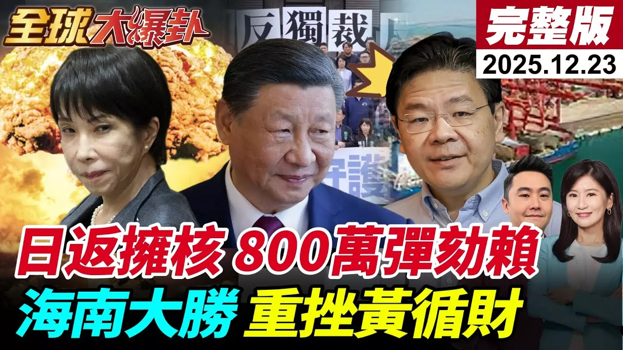 #苑舉正 #周錫瑋 #帥化民 #中國 #北京 #習近平 #美國 #川普 #特朗普 #日本 #高市早苗 #軍國主義 #無核三原則 #擁核 #核武 #核電 #中日 #小泉進次郎 #沖繩 #琉球 #钓鱼岛 #釣魚台 #美日安保 #第一島鏈 #二戰 #海南 #洋浦港 #自由貿易 #港口 #新加坡 #三亞 #特斯拉 #馬斯克 #英特爾 #Intel #黃循財 #彈劾 #賴清德 #卓榮泰 #游盈隆 #中選會 #財劃法 #副署 #違憲 #大法官 #藍白 #國民黨 #民進黨 #民眾黨 #台海 #兩岸 #2027 #解放軍 #川普級 #戰艦 #航母 #黃金艦隊 #美軍 #造船 #055 #052D #東協 #泰國 #柬埔寨 #邊境 #停火 #柏威夏寺 #稀土 #觀光 #詐騙 #豬仔 #辮子妹 訂閱《全球大視野》,按讚、分享,開啟小鈴鐺,鎖定「全球大爆卦」帶來的最新國際快訊與深度分析! 主持人: #張卉林 #謝其恩 #全球大爆卦 周一至周五 16:00-18:00 🔶搶救小編推薦碼 下載中天新聞網APP!推薦代碼任選一位!https://deep.ctinews.com/app-cticx0eLR 責任編輯:住海編 cti852 魚編 cti997📣支持優質國際新聞,請加入全球大視野會員👉 https://pse.is/3q6hhd ☀️《全球大視野》報導國際新聞事件,第一手現場直播,深受全球華人信賴! 《全球大視野》節目 每週一至五23:00首播 《全球大爆卦》節目 每週一至五16:00首播 《前進戰略高地》節目 每週六21:00首播 《國際直球對決》節目 每週日21:00首播 ✨專屬優惠價請輸入代碼【cti888】✨ 【雙12囤購健康】滿6288送688:https://pse.is/AR494c 【雙12保養抗老】買KS買1送1↘下殺:https://pse.is/AR500c 【雙12幫助入睡】買益生菌享順暢好眠:https://pse.is/AR495c 【雙12活力膠原】買膠原蛋白美顏行動UP:https://pse.is/AR497c 【雙12乳鐵蛋白】買膠乳鐵蛋白加強防護力:https://pse.is/AR496c 【雙12抗光抗老】KS抗光清爽高防曬凝露:https://pse.is/AR502c 【雙12入冬保濕】KS蘆薈保濕舒緩凝膠:https://pse.is/AR501c 【雙12主播桌曆】主播美照一次收藏:https://pse.is/AR491c 【最夯掛繩】外出手機隨身超值優惠:https://bit.ly/AR300c1 【保暖親膚】保暖落肩帽T買多優惠:https://bit.ly/AR306c 【精神滿滿】隨身咖啡錠精神超給力:https://pse.is/AR378c 【安心防護】旺旺水神專區:https://bit.ly/AR274c 【中天精神】KEEP FIGHTING中天文創:https://pse.is/AR355c 【酥脆挑豆】旺旺挑豆四款口味一次購:https://pse.is/AR323c 【絕對涮嘴】旺旺嚼代爽椒組合包:https://bit.ly/AR276c 💵線上贊助中天👉https://bit.ly/ctidonate (綠界金流/可用信用卡、ATM) 💵直接贊助中天👉彰化銀行台北分行:009-5012帳號:50128688988600戶名:中天電視股份有限公司 🏧ATM:CHANG HWA COMMERCIAL BANK TAIPEI BRANCH(CCBCTWTP501) 🏦A/C NO:50128688988600 A/C NAME:CTI TELEVISION INCORPORATION ⚠️未經著作權人同意,勿將內容用於商業性質之分享、連結。 ⚠️未經授權,嚴禁複製和用於人工智慧開發及利用。 ⚠️如有任何營業使用,必須事先取得書面同意。 【大視野聊天室規範】歡迎留言互動,請尊重各自立場、理性發言,遵守本聊天室規範,違規者一經發現,將遭刪言或封鎖。〈管理員有權隨時修正規定〉 🚫禁止使用不雅、挑釁、謾罵、歧視、仇恨等言詞 🚫禁止發表危害公共安全等涉及犯罪言論 🚫禁止散布不實訊息 🚫禁止傳送鼓勵博弈訊息 🚫禁止傳送色情服務訊息 🚫禁止任何形式洗版 🚫禁止騷擾管理員與其他使用者 🎵YouTube音樂庫: https://goo.gl/Z6TsBI