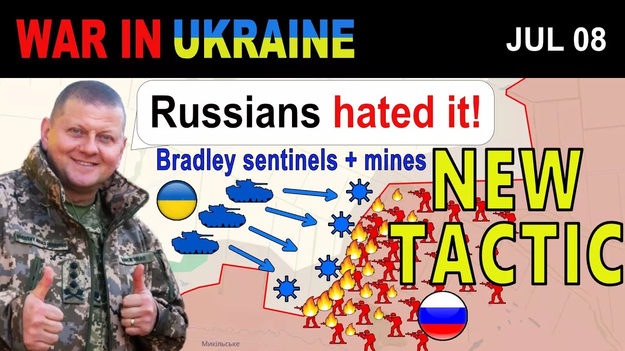 🔴 Support via Online Store: https://uasupporter.com/collections/summer-sale 🔵 EXCLUSIVE Strategic Updates on Patreon: https://www.patreon.com/ReportingFromUkraine 🔵 EXCLUSIVE Strategic Updates on YouTube Membership: https://www.youtube.com/ReportingFromUkraine/join 🔞UNCENSORED COMBAT FOOTAGE on Telegram: https://t.me/RFUEnglish or @RFUEnglish 🟠 Support via Thanks button donation under the video (next to "like" and "share") 🟠 Support via 1-time donation: https://buymeacoffee.com/reportingfromua ⚫ Follow us on Twitter/X: https://twitter.com/RFUEnglish or @RFUEnglish Today, there is a lot of news from the Kurakhove direction. Here, in the past several weeks, Ukrainian forces have consistently thwarted all Russian attempts to advance further west from Novomykhailivka by employing multi-level tactics designed to exhaust enemy forces and undermine their combat capability. This relentless defense has placed significant pressure on Russian commanders, pressuring them to seek alternative strategies to breach Ukrainian defense lines. Consequently, they decided to open a new vector of attack to the south of Novomykhailivka to find a breakthrough. Firstly, to achieve this, they decided to use the small village of Solodke as a launchpad for a surprise attack west of Vodyane. The initial Russian assault group consisted of two tanks, as seen in this geolocated video. While attempting to cross the open fields between the two villages and reach a tree line that could serve as a position, they suddenly encountered a Ukrainian minefield. The second tank exploded first, and moments later, the leading armored vehicle also hit an antitank mine, bursting into flames. Although this attack ended in disaster for the Russians, they later managed to capture the tree line and began fortifying their position in anticipation of the Ukrainian response. The Ukrainians understood that they could not allow the Russians to establish a foothold in the tree line, as it would pose a significant threat to their defense lines near Kostyantynivka and potentially expose their southern flank. Consequently, they responded almost immediately by deploying a Bradley armored fighting vehicle to spearhead a counterattack aimed at clearing the Russian presence from the tree line. The geolocated footage shows the Bradley advancing at high speed while delivering suppressing fire from its main gun. The intense and devastating effect of this firepower is evident, as the vehicle gets within several meters of the tree line, continuing to inflict damage on the Russians from very close range. Subsequently, the Ukrainian infantry assault group disembarks and begins clearing the trenches using various weapons, including grenades. Moments later, the task is accomplished, and another Bradley arrives, delivering additional troops and evacuating a wounded soldier. Russian military bloggers later acknowledged that the outcome of this counterattack was successful, with the Ukrainians successfully recapturing the positions in the tree line. The original, uncensored footage of all operations can be found on our Telegram channel. The failure of this Russian effort pushed their commanders to again attempt a direct assault against Kostyantynivka. As you can remember, most of the previous attacks in this direction happened north of the small lake that divides the village from the small settlement of Paraskoviivka. This time, however, the Russians chose to strike from the south side of the lake. A geolocated video from the area shows one Russian armored fighting vehicle attempting to cross the field using a similar approach to the earlier Ukrainian attack. Although the vehicle manages to advance slightly, it soon hits a mine and explodes, prompting the surviving crew members to abandon the remnants and seek cover. Minutes later, a second vehicle is destroyed by Ukrainian defenders using an antitank guided missile, and it is subsequently finished off with a kamikaze drone. The next scene in the clip reveals the rapid escalation of the situation, as we see the smoking remains of six or seven Russian armored vehicles in flames, all struck and destroyed in the same area, effectively turning it into a death zone. Several other huge explosions can be seen in the video, showcasing how effective the Ukrainian defense is at rebuffing this new Russian endeavor. Ukrainians then decided to maintain their proactive campaign to prevent the Russians from amassing large forces by targeting their positions, hideouts, personnel, and vehicles. Soldiers from the Ukrainian 79th Air Assault Brigade published several videos showcasing their engagements with various enemy targets in the area. The first video highlights the skillful work of their FPV drone operators, who are seen hunting Russian troops in open fields and among the ruins of Paraskoviivka. The small village, offering almost no cover due to the intense fighting, became a focal point for Ukrainian attacks. To eliminate any...
