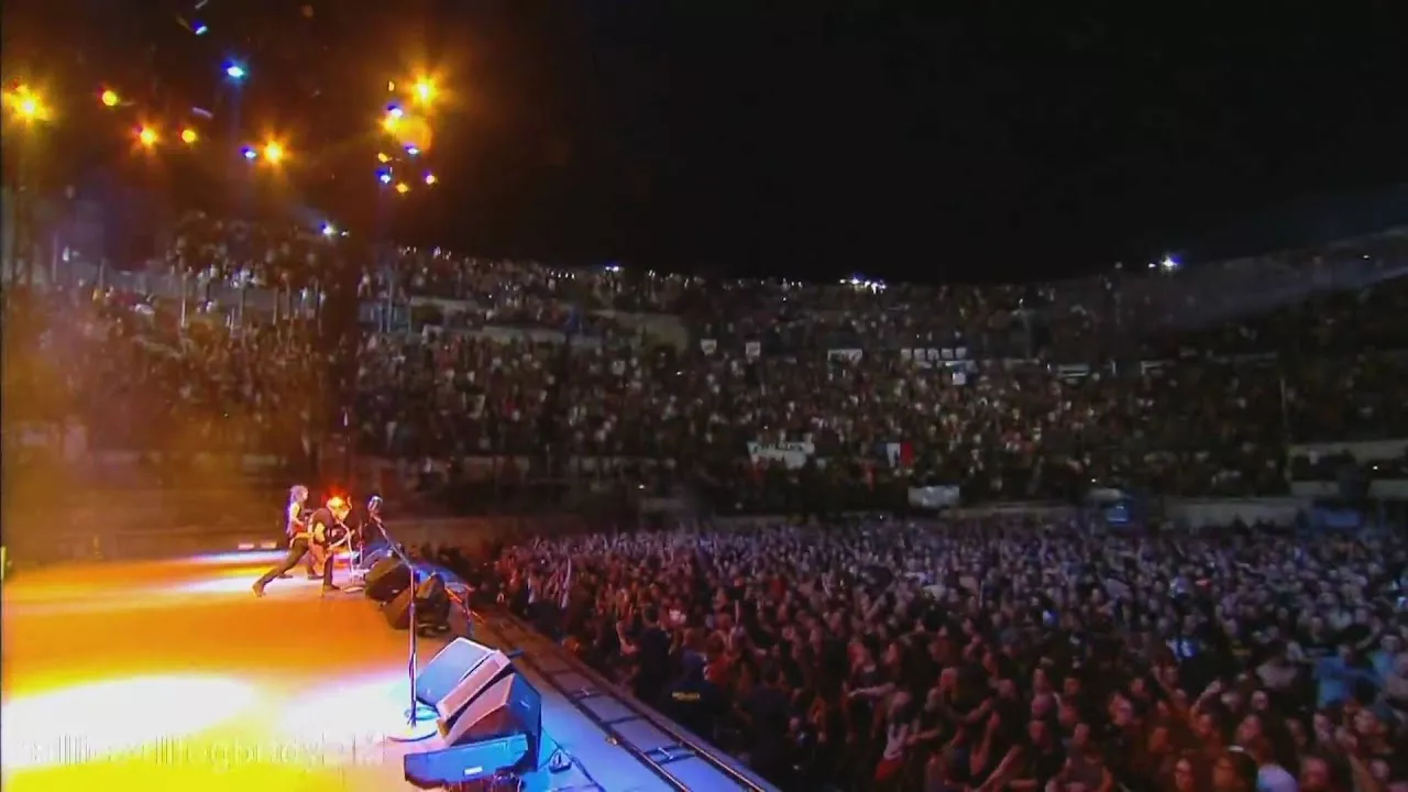Francais Pour Une Nuit 10/19/2009 On July 7th of this year we were honored to perform at Arenes de Nimes, the historic Roman amphitheatre in Nimes, France, easily one of the most spectacular venues in the world. We thought it would be a memorable night, so we asked our friends in France to bring along a film crew to document the festivities. The result is "Francais Pour Une Nuit" (translation: "French For One Night"), the DVD of the evening including the full show, interviews with us, and five videos shot by YOU, our buddies in the audience. All this and more will be available starting November 23, 2009! "Francais Pour Une Nuit" was extra special for us because not only was it filmed in France, but ALL aspects of the project are French as the show was filmed, recorded, and edited with French camera and recording crews, the artwork on the package and special box set (more on that in a minute!) were created by a French design team; even the credits are in French. The only non-French parts: the three Americans and one Dane on stage and the photos shot by Englishman Ross Halfin. The DVD will be available in retail stores in France only, at www.metallica.com, or you may order online through the record company at www.metallicanimes.com. There will be three formats available: Standard DVD in a digipack including a 16 page booklet, Blu-Ray DVD, also in a digipack with the booklet, and the deluxe limited edition box set that includes the DVD, a copy of "Death Magnetic on CD," a Large T-shirt, laminated pass, and five exclusive photos (see it all below). And just in case you couldn't join us that night, here is the set list: 1. Blackened 2. Creeping Death 3. Fuel 4. Harvester Of Sorrow 5. Fade To Black 6. Broken, Beat & Scarred 7. Cyanide 8. Sad But True 9. One 10. All Nightmare Long 11. The Day That Never Comes 12. Master Of Puppets 13. Dyers Eve 14. Nothing Else Matters 15. Enter Sandman 16. Stone Cold Crazy 17. Motorbreath 18. Seek & Destroy World Magnetic Tour - 2010 Date Location Venue Tix 04/13/2010 Oslo, Norway Telenor Arena Limited Availability 04/14/2010 Oslo, Norway Telenor Arena Limited Availability 04/17/2010 Riga, Latvia Riga Arena Buy Tickets 04/18/2010 Riga, Latvia *Consolidating* Details 04/18/2010 Tallinn, Estonia Saku Suurhal Limited Availability 04/20/2010 Vilnius, Lithuania Siemens Arena SOLD OUT! 04/21/2010 Vilnius, Lithuania Siemens Arena Buy Tickets 04/24/2010 Moscow, Russia SK Olimpiisky Buy Tickets 04/25/2010 Moscow, Russia SK Olimpiisky Buy Tickets 05/11/2010 Belfast, N. Ireland Odyssey Arena SOLD OUT! 05/12/2010 Belfast, N. Ireland Odyssey Arena Buy Tickets 05/14/2010 Budapest, Hungary Puskas Ferenc Stadium Limited Availability 05/16/2010 Zagreb, Croatia Hippodrome Buy Tickets 05/18/2010 Lisbon, Portugal Pavilhao Atlantico SOLD OUT! 05/19/2010 Lisbon, Portugal Pavilhao Atlantico Limited Availability 05/22/2010 Tel Aviv, Israel Ramat Gan Stadium Buy Tickets 05/23/2010 Lyon, France Halle Tony Garnier SOLD OUT! 06/14/2010 Madrid, Spain Rock In Rio Buy Tickets 06/16/2010 Warsaw, Poland Sonisphere - Bemowo Airport Buy Tickets 06/18/2010 Zurich, Switzerland Sonisphere - Jonschwil Degenaupark Buy Tickets 06/19/2010 Prague, Czech Republic Sonisphere - Mimon Airport Buy Tickets 06/22/2010 Sofia, Bulgaria Sonisphere - Levski Stadium Buy Tickets 06/24/2010 Athens, Greece Sonisphere - Terra Vibe Park Buy Tickets 06/26/2010 Bucharest, Romania Sonisphere - Romexpo Buy Tickets 06/27/2010 Istanbul, Turkey Sonisphere - Inonu Stadium Buy Tickets https://www.youtube.com/fabcor95 https://www.youtube.com/user/tallica4l... https://www.youtube.com/user/MetallicaHD