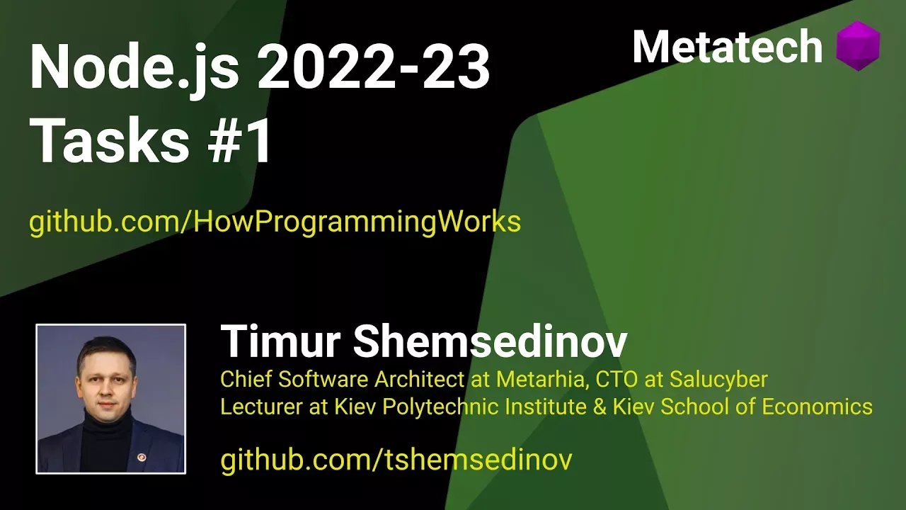 Github автора: https://github.com/tshemsedinov Задания: https://github.com/HowProgrammingWorks/DDD/blob/master/JavaScript/Tasks.md