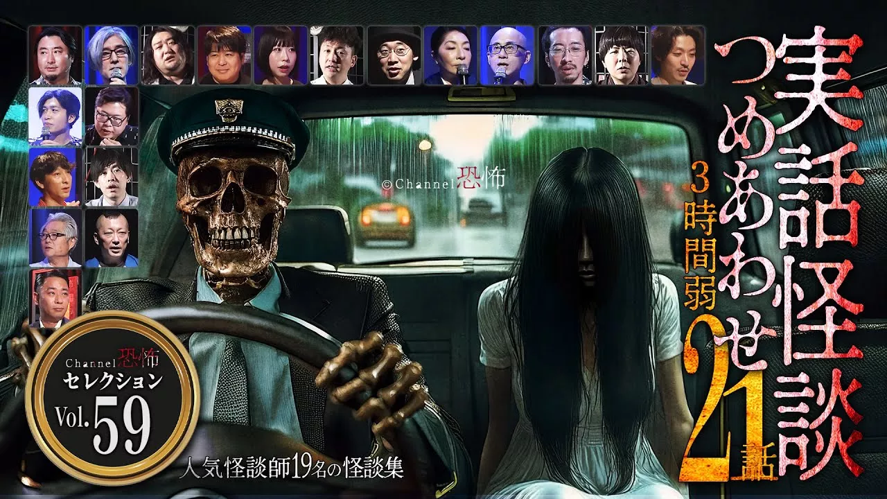 月1恒例の怪談集第59弾!2025年10月1日公開 実力派の怪談師が集う〈Channel恐怖〉のオリジナル番組から抜粋した、実話怪談21話をまとめて詰め合わせた3時間弱の長尺パック! 【収録怪談】 00:00:00 オープニング 00:00:10 「靴下の中」夜馬裕 00:12:12 「修学旅行」響洋平 00:19:04 「貝の家族」Dr.マキダシ ※広告が入ります 00:24:48 「廃寺にて」ぁみ 00:30:59 「実家の異変」深津さくら 00:38:46 「外出届け」宜月裕斗 ※広告が入ります 00:46:29 「今日は何もしないで・・・」伊山亮吉 00:50:44 「邪恋」川奈まり子 01:03:59 「山の中の家」響洋平 ※広告が入ります 01:11:35 「404号室」いたこ28号 01:30:34 「ずっと」田中俊行 ※広告が入ります 01:39:28 「彼女のネックレス」柳家花ごめ 01:48:48 「高い高い」スズサク 01:56:40 「指をくわえる男」國澤一誠 ※広告が入ります 02:01:23 「タクシー」宮代あきら 02:11:50 「廃ホテルの肝試し」高田公太 02:19:23 「ピンクちゃん」佐伯つばさ ※広告が入ります 02:29:32 「奇妙なスキーヤー」田中康弘 02:41:27 「×」夜馬裕 ~ 「滴る」城谷歩 これらの怪談は・・・ ひとつの怪談から連鎖していく《連鎖怪談》・・・ 『住倉カオスの怪談☆語ルシス』と、怪談独り語り『怪談鬼』シリーズ、生配信『夜馬裕のスジなし怪談』『DJ響の怪談に酔いしれる夜』、公開イベント『スジなし怪談劇場版』『DJ響の怪談に酔いしれる宴』『男前怪談会』等からの抜粋です。 全編を視聴したい方は、メンバーシップ加入またはリンク先(概要後半)へ・・・ 《全編視聴するなら『Channel恐怖』で主に3通りの視聴方法!》 ※それぞれ番組編成が異なります。詳細は http://ch-kyofu.com/ ★YouTube Channel恐怖メンバーシップ加入 月額590円で有料コンテンツ含む全番組見放題&限定動画視聴&カスタム絵文字使用可 ※iphoneアプリからの加入の場合、手数料が上乗せされますのでご注意下さい。 Androidアプリ又はPC又はWebブラウザからの加入であれば、手数料はかかりません。 ★amazon prime video チャンネル (https://www.amazon.co.jp/channels/chkyofu%EF%BC%89 ★ニコニコチャンネル (https://ch.nicovideo.jp/kyofu%EF%BC%89 ★その他、U-NEXT、Huluなどでも配信中! ◎このYouTubeチャンネルでは生配信の他、月、水、金、土の 週4回~ペースでオリジナル・オカルトコンテンツを更新中! 作業用、睡眠用にも最適な2時間以上の長尺怪談つめあわせも多数配信中! ◎Cnannel恐怖X @ch_kyofu ****注意事項**** 当チャンネル内の全てのコンテンツ、サムネ、画像、文字情報等の著作権はChannel恐怖(リーレ株式会社)が有します。 一切の無断転載、コピー、ダウンロード、及び映像、音声の2次利用を禁じます。 ****WARNING**** Channel Kyoufu (Rile Co., Ltd.) owns the copyright of all contents, thumbnails, images, text information, etc. in this channel. Please note that all rights reserved.