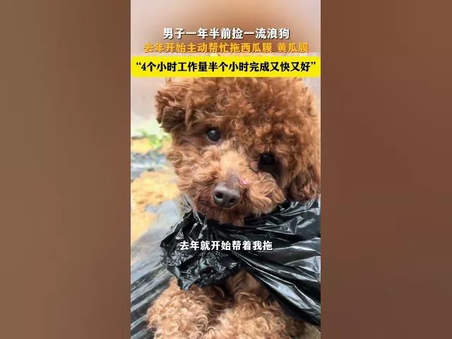 9月15日,山东烟台。男子一年半前捡一流浪狗,去年开始主动帮忙拖西瓜膜 黄瓜膜,“4个小时工作量半个小时完成 又快又好”。