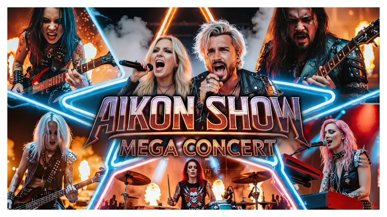 The biggest AI-powered rock/metal concert ever created. A once-in-a-lifetime event. No loops. No shortcuts. No templates. Just pure fire, crafted by hand — frame by frame, beat by beat. This is the FULL 1 hour 40 minute New Year’s Eve concert, built as a cinematic experience: explosive glam metal, soaring hard rock, heavy riffs, laser-lit crowds, fireworks, dancers, full band choreography, and the signature Aikon Show stage design brought to life. Every second of this concert was edited manually. Every clip, every transition, every movement — handcrafted. This is not just another AI music video. This is the first AI-driven mega-concert of this scale on YouTube. Get your drink, turn up the volume, and step into the New Year with a blast. Welcome to the Aikon Universe. 00:05 - Intro 03:42 - Born for the Spotlight 09:08 - Live by the Riff 13:27 - Spark Inside the Strings 18:00 - Never Stop Moving 22:06 - No Time to Waste 27:00 - Let the Earth Shake 30:49 - Burn the Sky 35:03 - Welcome to the Show 39:10 - Louder Than the Storm 43:10 - She’s the Fire 47:28 - Built for Chaos 51:40 - One Flame, One Crowd 56:06 - Call Her Back 1:00:22 - The Real Show Returns 1:05:01 - For the Ones Who Roar 1:09:06 - One Warrior, One Dream 1:15:45 - Code and Chaos 1:20:01 - Living with Chaos 1:24:00 - Fire Meets Chaos 1:28:40 - Until the Last Flame 1:33:45 - Outro 🔥 Join the community YouTube: https://www.youtube.com/@AikonShow Discord: https://discord.gg/XdJadNdz26 🎆 What to expect 20+ explosive heavy metal & rock performances Full stage lighting, crowd animations, pyro & fireworks Lead vocalists, guitarists, bassists, drummers & dancers Catwalk runway shots, crowd-walk sequences, neon ambience Massive end-of-year finale you’ll never forget 💬 Leave a comment! Tell us which performance was your favorite — we read everything and take in every suggestion. Don't forget to like, comment, and subscribe for more. 🔥 Hashtags #AikonShow #NewYearConcert #AIConcert #GlamMetal #HardRock #AIShowcase #EpicConcert #RockShow #MetalConcert #NewYearsEve #aikonshow, #newyearconcert, #aiconcert, #rockmetal, #glammetal, #hardrock, #metallive, #epicconcert, #aimusic, #metalshow, #rockshow, #aiproduction, #newyearseve2026, #aistage, #megaconcert