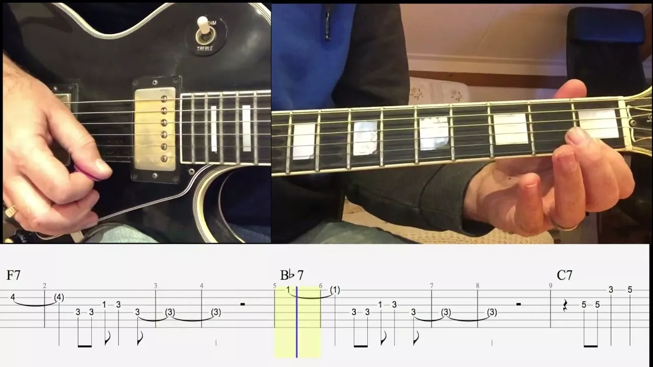 Video tutorial and TABS for guitar on how to play the song Watermelon Man written by Herbie Hancock. Rhythm guitar and melody.