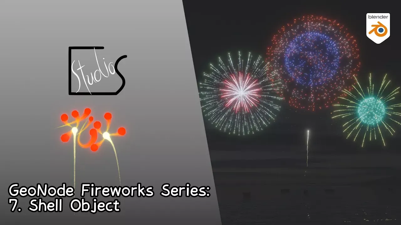 Why not make some flashes and bangs with Geometry Nodes. In this tutorial series, I'll be making a physics based fireworks with realistic movements. I'll be covering topics like making simple physics engine with simulation nodes, spawning system, spark shader, etc. everything you need to make fireworks. At the end you'll be star mining your scene like it's New Years' Eve! ~~~~~~~~~~~~~~~~~~~~~~~~~~~~~~~~~~~~~~~~~~~~~ For this episode, I'll be detaching shell design from the fireworks node tree as a separate object. It is not meant to change the aesthetics but to improve the utility of the system as a while Back Issue Ep. 1 Physics Engine https://youtu.be/1_M_nKQa_Zw Ep.2 Spawning System https://youtu.be/6hX-oxhmLb4 Ep.3 Emulating Combustion https://youtu.be/BzlCm-i66ag Ep.4 Tail Formation https://youtu.be/bykPy1nPv-M Ep.5 Spark Shader https://youtu.be/XMKUgOX8-yQ Ep.6 Shell Design Prep https://youtu.be/uUQ3xO50hYM Blender Ver. Used: 4.1