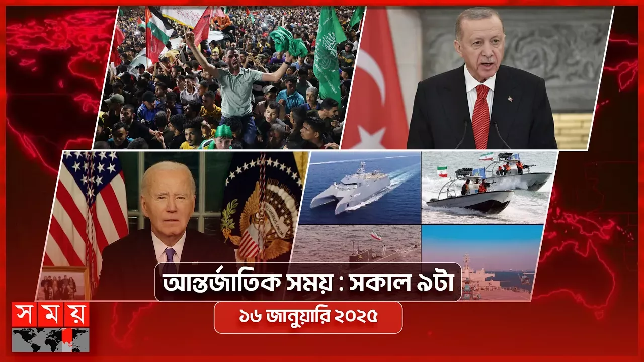 আন্তর্জাতিক সময় | সকাল ৯টা | ১৬ জানুয়ারি ২০২৫ | Somoy TV International Bulletin 9am | Somoy TV Content Declaration : ============================= This Content contains footages from military drill sessions that are used for news documentation purpose and does not promote any violence by any means. আরও বিস্তারিত জানতে ভিজিট করুন: https://www.somoynews.tv/ Fair Use Disclaimer: ================= This channel may use some copyrighted materials without specific authorization of the owner but contents used here falls under the “Fair Use” as described in The Copyright Act 2000 Law No. 28 of the year 2000 of Bangladesh under Chapter 6, Section 36 and Chapter 13 Section 72. According to that law allowance is made for "fair use" for purposes such as criticism, comment, news reporting, teaching, scholarship, and research. Fair use is a use permitted by copyright statute that might otherwise be infringing. Non-profit, educational or personal use tips the balance in favor of fair use. "Copyright Disclaimer Under Section 107 of the Copyright Act 1976, allowance is made for -fair use- for purposes such as criticism, comment, news reporting, teaching, scholarship, and research. Fair use is a use permitted by copyright statute that might otherwise be infringing. Non-profit, educational or personal use tips the balance in favor of fair use." About SOMOY TV: =============== "Somoy National" is the official national news (Bangladeshi News) based channel of SOMOY TV (Somoy Media Limited). It is also referred that SOMOY TV is the Bangladesh Government Approved 24/7 News Based TV Channel, Where we makes all the news contents and program materials with the own team or employees. Somoy TV has the sole rights of all contents and it does not give permission to any business entity or individual to use these contents except SOMOY TV (SOMOY Media Limited). According to TRP (Television Rating Point), it is the most popular news channel in Bangladesh from 2013. "SOMOY TV" is the Most Reliable News Source and Leading 24/7 News Based TV Channel in Bangladesh ==================== Somoy TV has the sole rights of all contents and it does not give permission to any business entity or individual to use these contents except SOMOY TV (SOMOY Media Limited). This Channel is Based on News and Current Affairs. The uploaded all contents are Made by our own team. Also Sometimes We are using some Third-Party materials where we have the specific authorization and permission to use this on YouTube. Stay Connected with us: ==================== "SOMOY TV (Somoy Media Limited)" is the Leading 24/7 News Based TV Channel in Bangladesh. Website: https://www.somoynews.tv/ YouTube: https://www.youtube.com/somoytvnetupdate Facebook: https://www.facebook.com/unsupportedbrowser Twitter: http://www.twitter.com/somoytv
